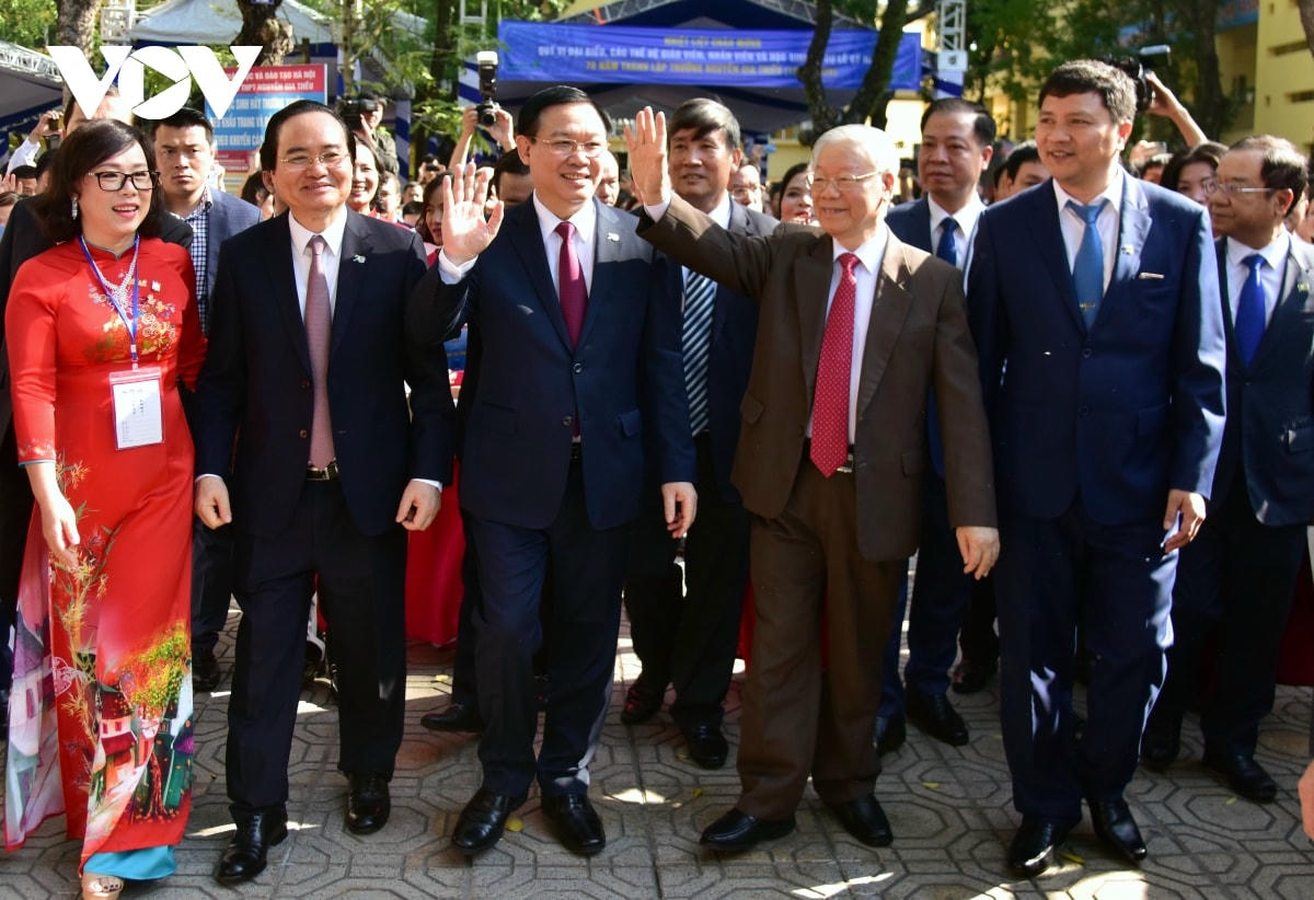 Chủ tịch nước Nguyễn Phú Trọng vẫn là cậu học sinh thuở nào, giống như các bạn của mình. Khi thầy Lê Trung Kiên, Hiệu trưởng Trường THPT Nguyễn Gia Thiều thay mặt các thế hệ thầy trò trân trọng mời Tổng Bí thư, Chủ tịch nước về dự Lễ kỷ niệm 70 năm ngày thành lập trường, ông nói: “Em báo cáo các thầy, các cô, bây giờ em là Tổng Bí thư, Chủ tịch nước, nhưng khi về trường em xin phép được các thầy, các cô vẫn gọi em là Nguyễn Phú Trọng - cựu học sinh của nhà trường. Trong buổi lễ, các thầy cũng giới thiệu em là cựu học sinh Nguyễn Phú Trọng. Em cũng xin phép được phát biểu cảm tưởng về những kỷ niệm của thời học sinh, về những kỷ niệm đẹp với các thầy cô và các bạn học”. Tổng Bí thư, Chủ tịch nước Nguyễn Phú Trọng dí dỏm hỏi thêm: “Em nói vậy các thầy cô thấy có được không?”.