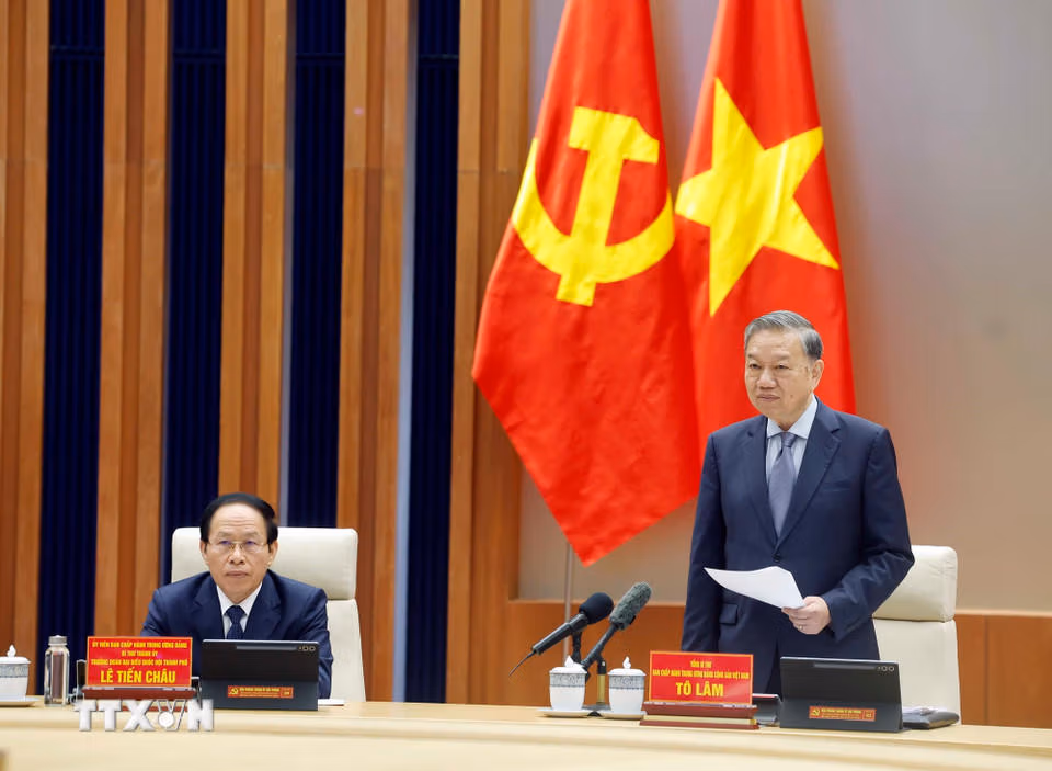 Tổng Bí thư làm việc với Ban Chấp hành Đảng bộ thành phố Hải Phòng Thứ Hai 16/03/2026 09:42 (GMT+7) Sáng 16/3, Tổng Bí thư Tô Lâm và đoàn công tác Trung ương làm việc với Ban Chấp hành Đảng bộ thành phố Hải Phòng. Tổng Bí thư Tô Lâm đến dự cuộc làm việc với Ban Chấp hành Đảng bộ thành phố Hải Phòng. (Ảnh: Thống Nhất/TTXVN)Tổng Bí thư Tô Lâm đến dự cuộc làm việc với Ban Chấp hành Đảng bộ thành phố Hải Phòng. (Ảnh: Thống Nhất/TTXVN)Tổng Bí thư Tô Lâm chủ trì cuộc làm việc với Ban Chấp hành Đảng bộ Thành phố Hải Phòng. (Ảnh: Thống Nhất/TTXVN)Tổng Bí thư Tô Lâm phát biểu. (Ảnh: Thống Nhất/TTXVN)Tổng Bí thư Tô Lâm phát biểu. (Ảnh: Thống Nhất/TTXVN)Các đại biểu tham dự cuộc làm việc. (Ảnh: Thống Nhất/TTXVN)Các đại biểu tham dự cuộc làm việc. (Ảnh: Thống Nhất/TTXVN)Tổng Bí thư Tô Lâm và các đại biểu. (Ảnh: Thống Nhất/TTXVN)Tổng Bí thư Tô Lâm và các đại biểu. (Ảnh: Thống Nhất/TTXVN) TheoVietnam+ (VietnamPlus)