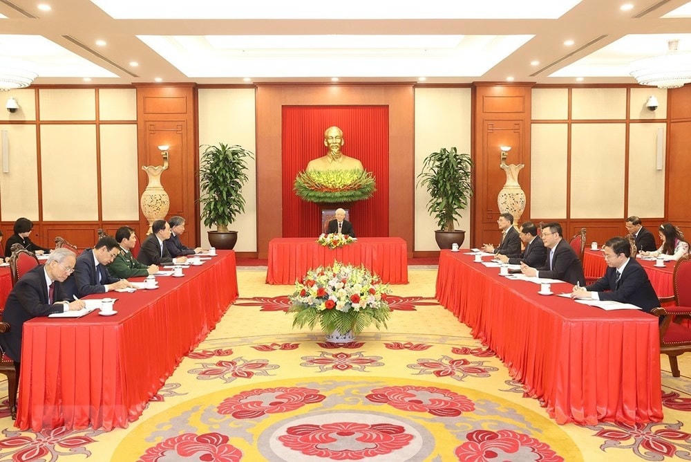 Để phát triển sâu sắc, bền vững và thực chất quan hệ hai nước trong thời gian tới, Tổng Bí thư nêu một số phương hướng lớn, tăng cường tiếp xúc, trao đổi giữa các cấp, các ngành dưới các hình thức linh hoạt, trong đó có việc thúc đẩy quan hệ Chính phủ, Quốc hội, quan hệ giữa các đảng và nhân dân hai nước.