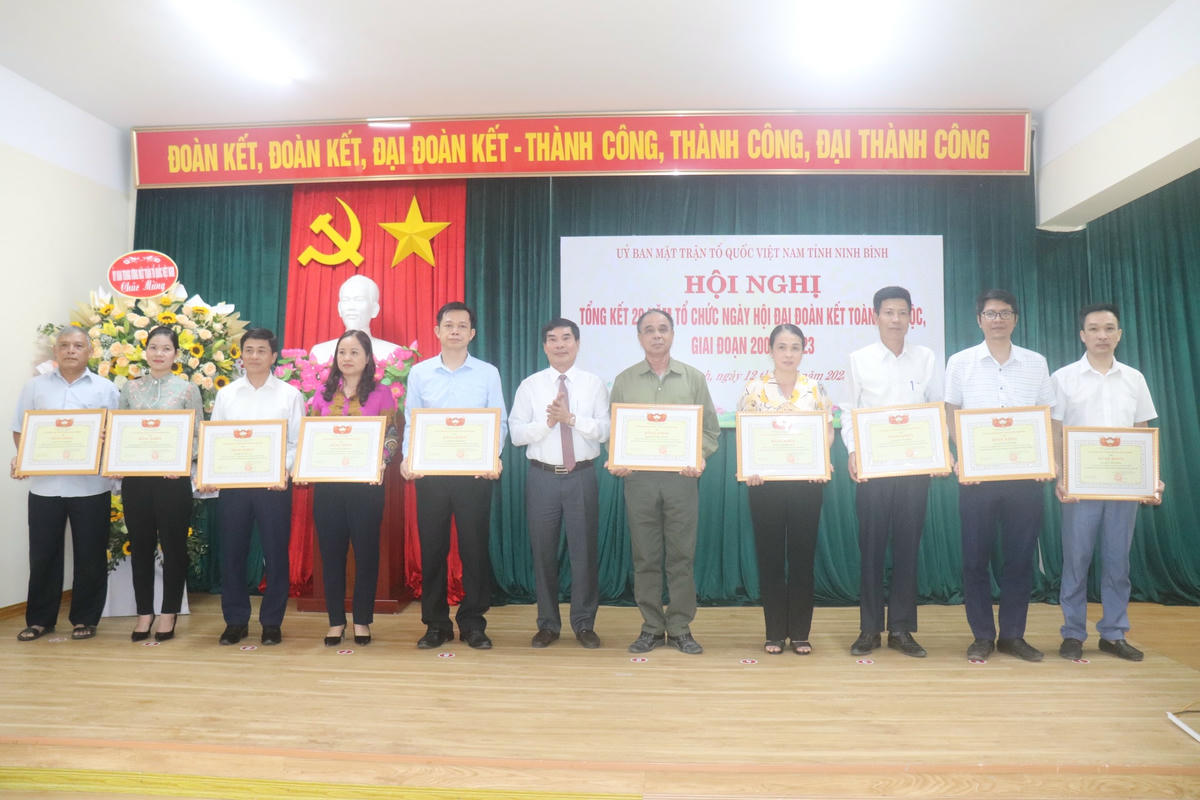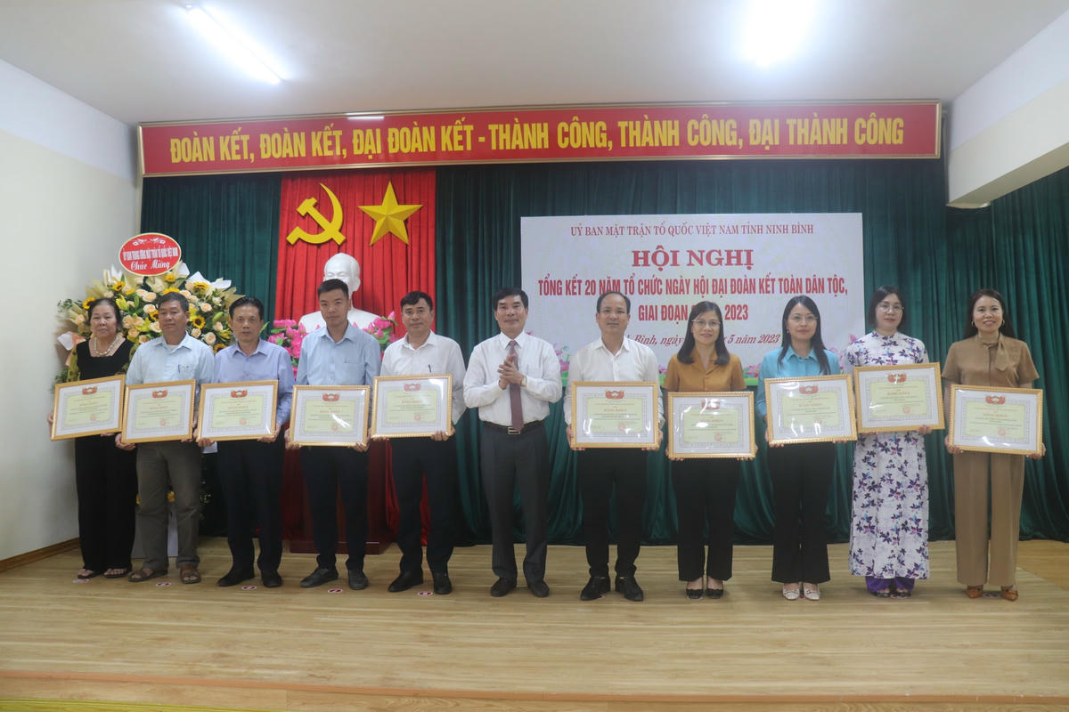 Ghi nhận sự đóng góp cho thành công chung, nhân dịp này, UBND tỉnh, UBMTTQ tỉnh Ninh Bình đã trao tặng bằng khen cho 20 tập thể và 30 cá nhân tiêu biểu có thành tích xuất sắc trong 20 năm chỉ đạo, tổ chức Ngày hội. Đây là những điển hình, những cách làm hay cần tiếp tục được nhân rộng trong thời gian tới.