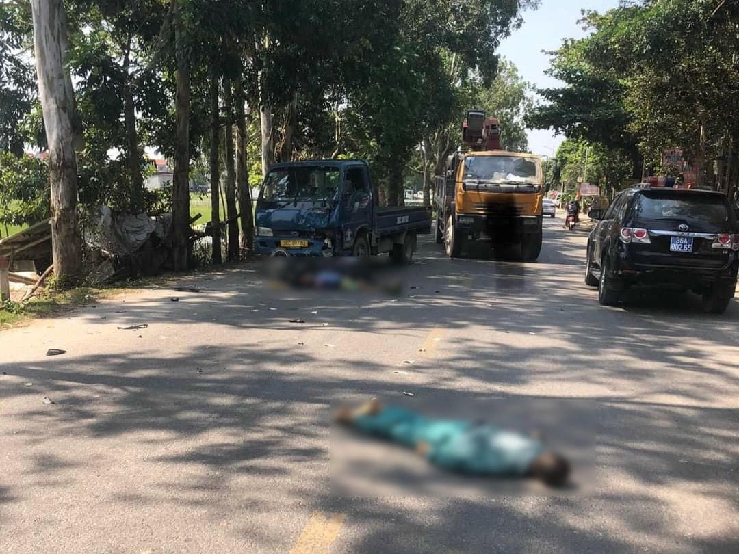 Hai người đàn ông ở Thanh Hóa đèo nhau trên một chiếc xe máy, tông trực diện vào xe tải rồi ngã ra đường, chết tại chỗ.