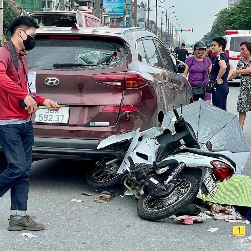 Đúng lúc này, xe máy BKS 29D2-072.xx do ông L.H. (53 tuổi, trú tại Đống Đa, Hà Nội) từ phía sau tông trúng đuôi ô tô BKS 36A-592.xx. Cú tông mạnh khiến ông H. ngã ra đường, tử vong tại chỗ.