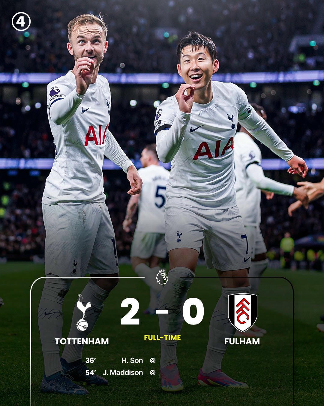 Với chiến thắng 2-0 trước Fulham, Tottenham trở lại ngôi đầu bảng, hơn Man City đứng thứ hai 2 điểm