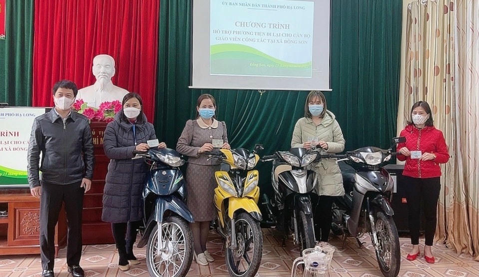 Bà Vi Bích Hạnh, Trưởng Phòng Giáo dục & Đào tạo TP Hạ Long chia sẻ: “Các điểm trường thuộc địa bàn xã Đồng Sơn, Kỳ Thượng nằm cách xa trung tâm thành phố đến 70 km, ngoài điểm trường chính thì các thầy cô giáo còn phải di chuyển tiếp đến các điểm trường phụ, có nơi cách điểm trường chính đến 20 km. Thành phố đã quan tâm, trao tặng các trường 10 chiếc xe máy giúp các thầy cô thuận lợi hơn trong việc di chuyển từ điểm trường trung tâm đến các điểm trường phụ để giảng dạy, đồng thời tạo sự yên tâm công tác cho các giáo viên khi tham gia giảng dạy tại các điểm trường trên địa bàn xã Đồng Sơn, Kỳ Thượng”.