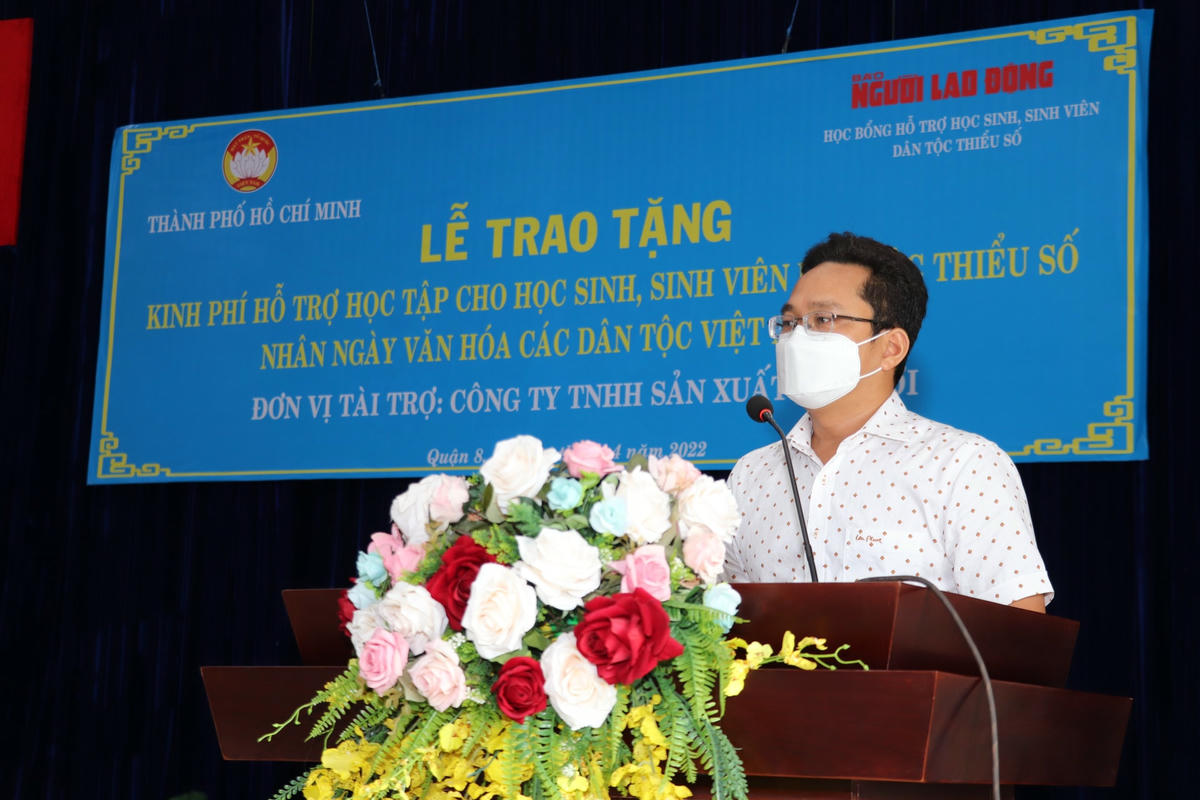 Ngày 24/4, Ủy ban MTTQ Việt Nam TP HCM phối hợp cùng Ủy ban MTTQ Việt Nam Quận 8 (TP HCM) tổ chức chương trình trao tặng kinh phí hỗ trợ học tập cho học sinh, HS, SV dân tộc thiểu số có hoàn cảnh khó khăn trên địa bàn Quận 8 nhân Ngày Văn hóa các dân tộc Việt Nam (19-4).