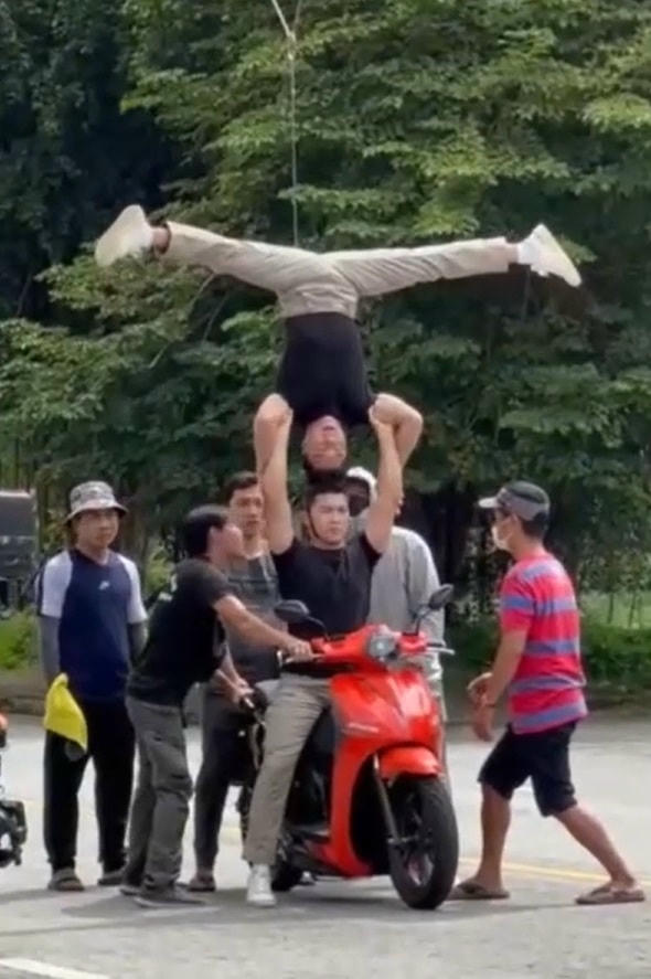 Chiều 22/10, Công an TP Thủ Đức thông tin, đã làm việc với nghệ sĩ Giang Quốc Nghiệp, là một trong hai nghệ sĩ xiếc biểu diễn trong đoạn video clip chồng đầu lên nhau đi xe máy phát tán trên mạng xã hội những ngày qua và một số cá nhân, đơn vị có liên quan.
