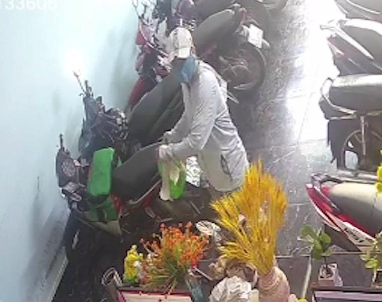 Theo hình ảnh này, Vũ Đình Long mặc áo khoác, đeo khẩu trang, chạy xe máy biển số giả đến quán Internet trên. Anh này cầm can xăng đi vào quầy tính tiền, lớn tiếng chửi chủ quán và nhân viên và nói "lần này tao cảnh cáo" rồi đổ xăng ra sàn nhà, nơi có hơn chục xe máy, phóng hoả rồi lên xe tẩu thoát.