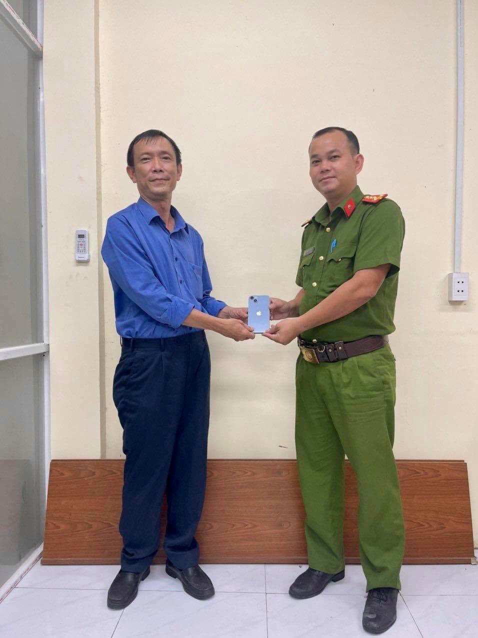 Bằng các biện pháp, Đại úy Nguyễn Văn Đức tìm liên hệ và biết chủ sở hữu là ông Huỳnh Tế, 54 tuổi, thường trú phường 9, quận 11 (TP HCM) thông qua nền tảng Zalo, Facebook. Sau khi xác minh đúng chủ sỡ hữu điện thoại, đại diện Tổ công tác 363 đã trao trả điện thoại Iphone 14 cho chính chủ.