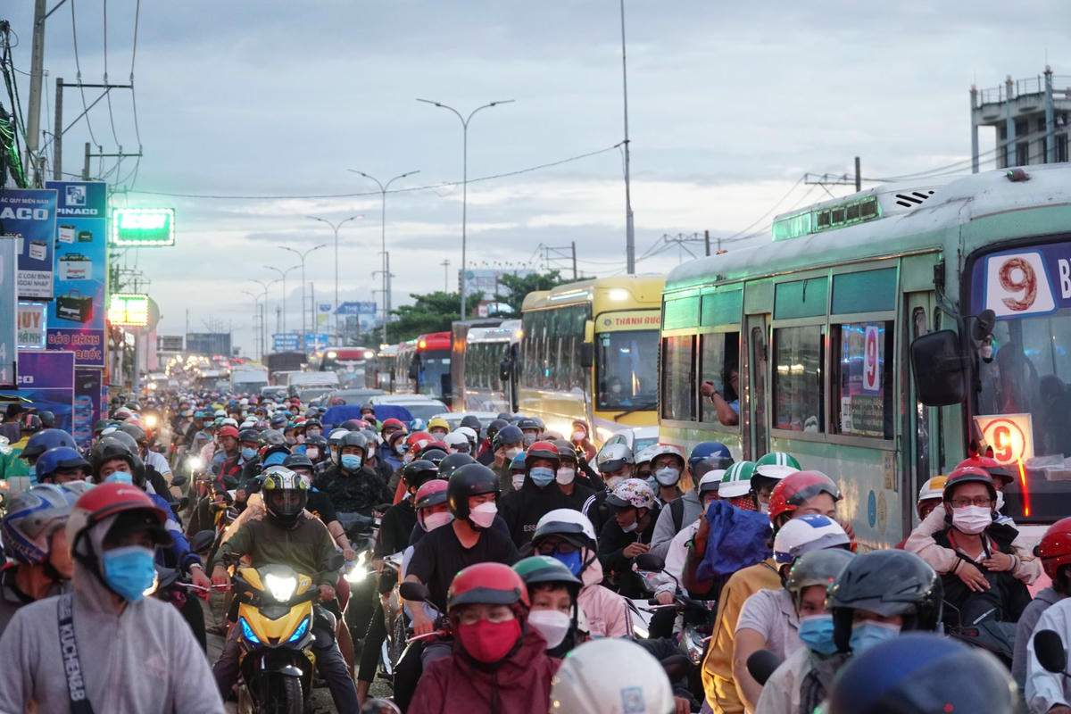 Sau kỳ nghỉ lễ Quốc khánh 2/9, chiều tối 4/9, hàng chục ngàn người dân lại chen chúc kẹt xe trở về nhà vì nhiều ngả đường dẫn vào TP HCM đều rất đông phương tiện.