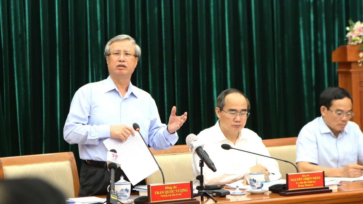 Ngày 24/6, tại TP HCM, Đoàn công tác Trung ương do ông Trần Quốc Vượng, Ủy viên Bộ Chính trị, Thường trực Ban Bí thư làm trưởng đoàn đã có buổi làm việc với Ban Thường vụ Thành ủy TP HCM về kết quả thực hiện Nghị quyết Đại hội lần thứ XII của Đảng, kết quả thực hiện Nghị quyết Đại hội Đảng bộ TP lần thứ X và kết quả thực hiện Chỉ thị 35 - CT/TW ngày 30/5/2019 của Bộ Chính trị. Ủy viên Bộ Chính trị, Bí thư Thành ủy TP HCM Nguyễn Thiện Nhân và lãnh đạo thành phố tiếp và làm việc với Đoàn.