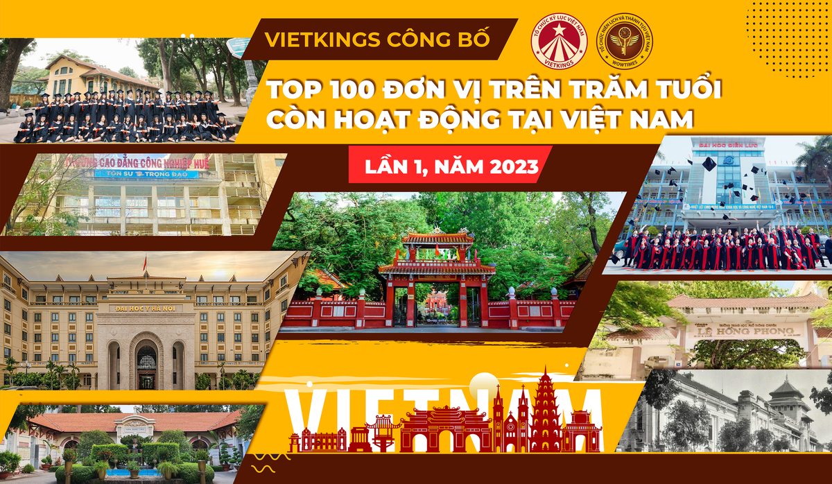 Ngày 8/2, Tổ chức Kỷ lục Việt Nam (VietKings) cho biết, vừa công bố 20 đơn vị đầu tiên trong 100 cơ quan, đơn vị trên 100 tuổi còn hoạt động tại Việt Nam. Lần công bố thứ 1- năm 2023, VietKings giới thiệu về lĩnh vực giáo dục.