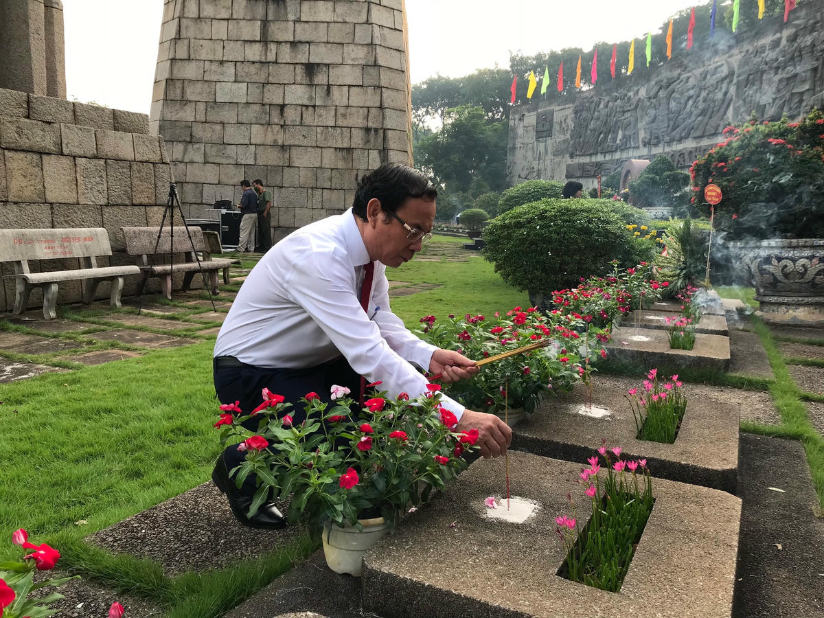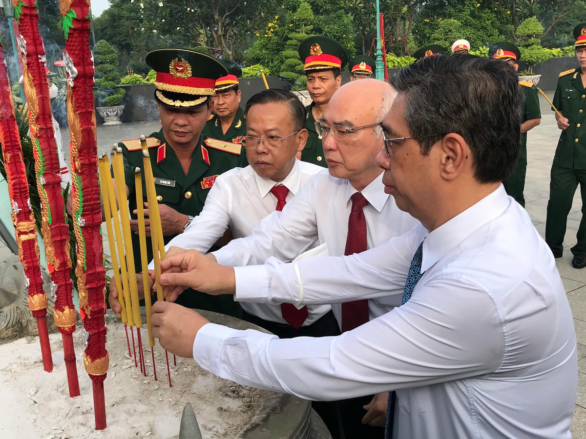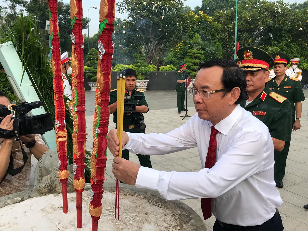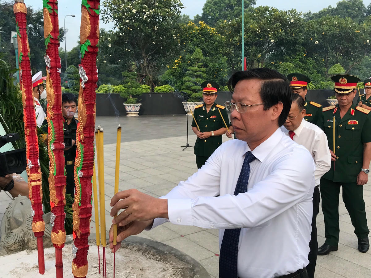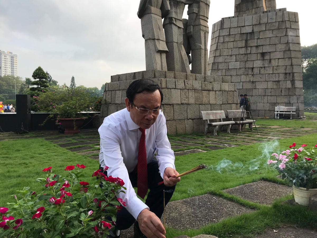 Sau khi tham dự lễ viếng tại Nghĩa trang Liệt sĩ TP HCM, đoàn Thành ủy, HĐND, UBND và Ủy ban MTTQ Việt Nam TP HCM đến viếng, dâng hương, dâng hoa tri ân các thế hệ lãnh đạo, các bậc lão thành cách mạng đã có những cống hiến to lớn trong công cuộc xây dựng và bảo vệ Tổ quốc tại Nghĩa trang TP HCM (Lạc Cảnh, TP Thủ Đức).