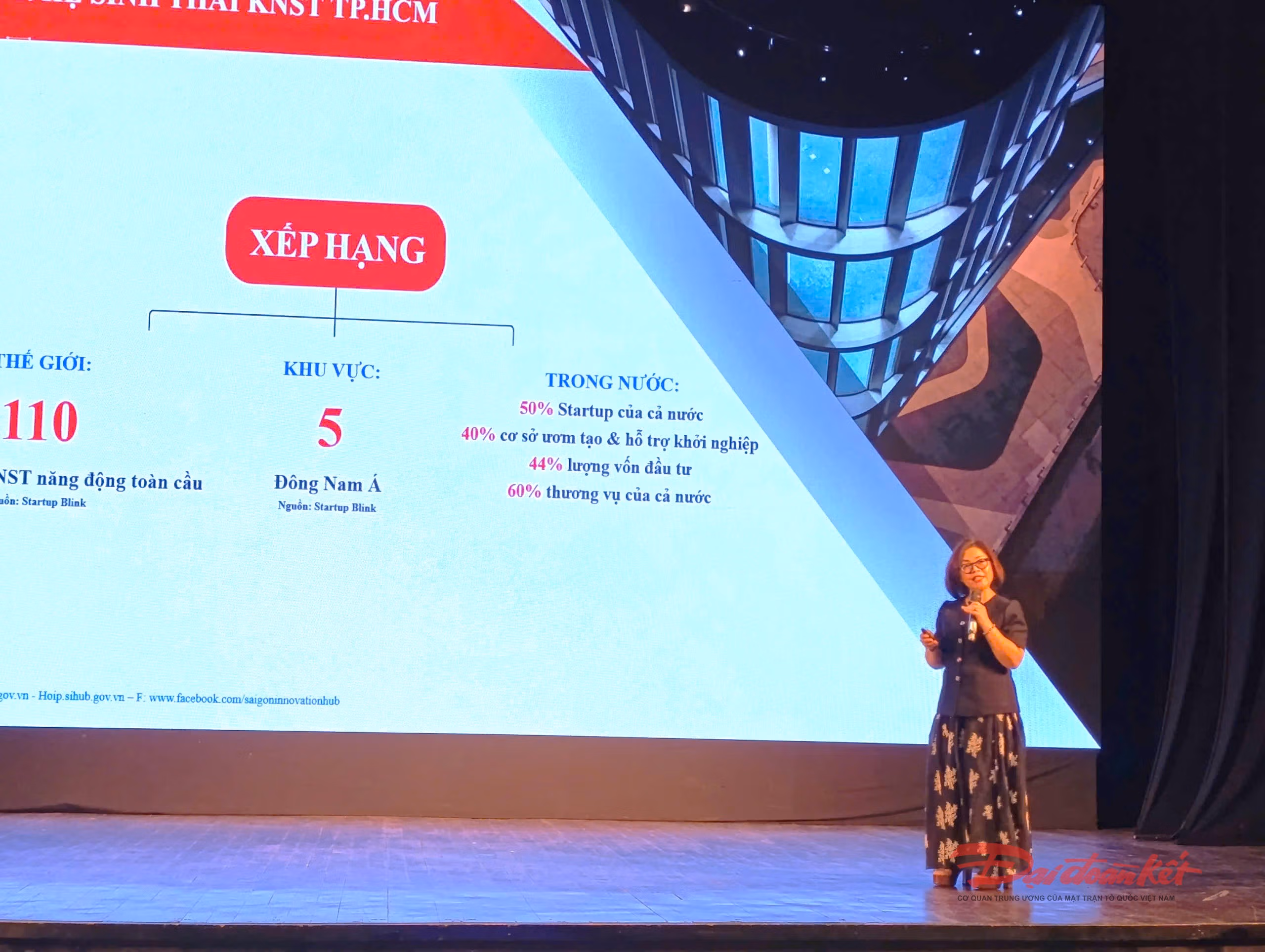 Tại hội nghị, bà Lê Thị Bé Ba - Phó Giám đốc Trung tâm khởi nghiệp sáng tạo TP Hồ Chí Minh đã chia sẻ về các chính sách đầu tư mạnh mẽ của thành phố trong lĩnh vực đổi mới sáng tạo hiện nay.