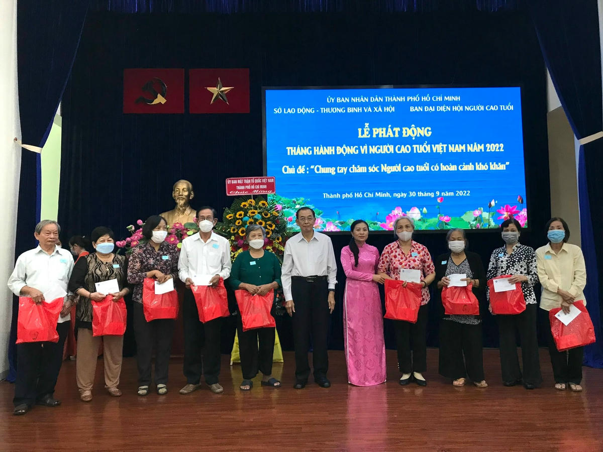 Ngày 30/9, tại Cơ quan Ủy ban MTTQ Việt Nam TP HCM, Sở Lao động - Thương binh và Xã hội TP HCM phối hợp với Ban Đại diện Hội Người cao tuổi Thành phố tổ chức Lễ phát động “Tháng vì người cao tuổi Việt Nam năm 2022”.