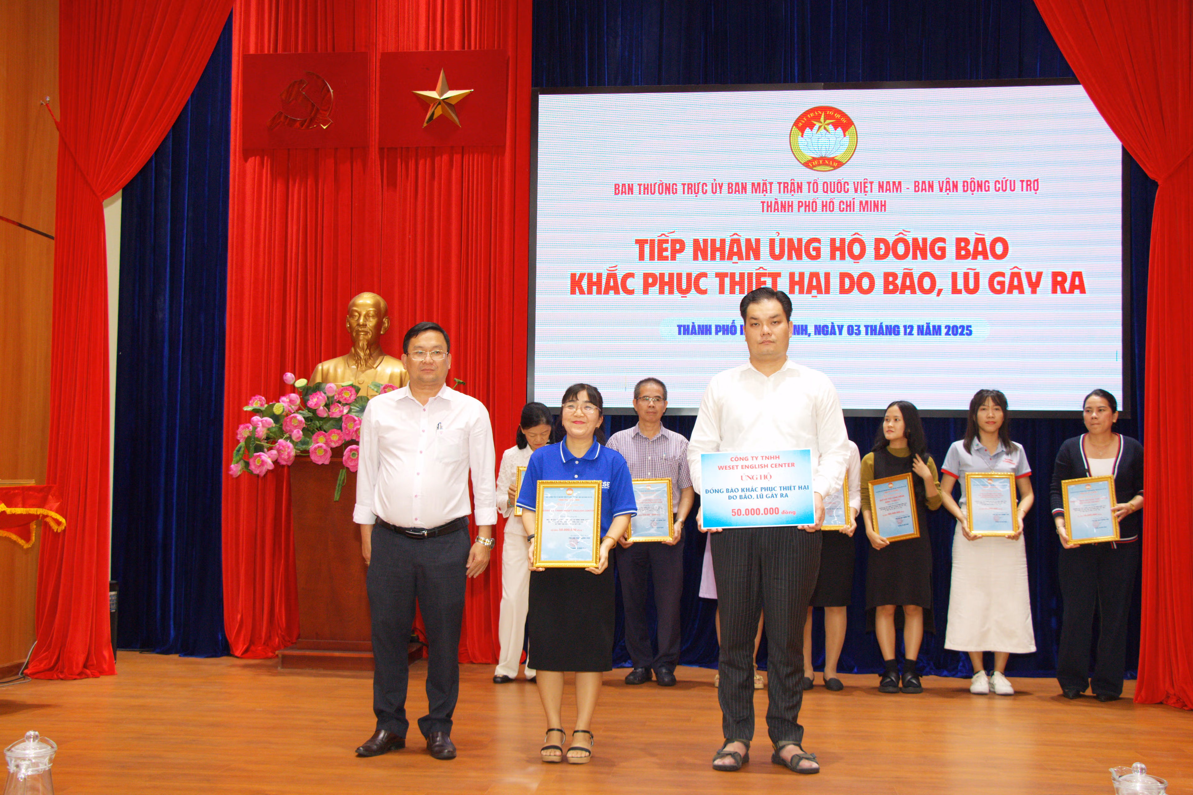 Chiều 3/12, Uỷ ban Mặt trận Tổ quốc Việt Nam TP Hồ Chí Minh - Ban Vận động cứu trợ thành phố tổ chức lễ tiếp nhận ủng hộ đồng bào các vùng chịu thiệt hại bởi bão lũ.