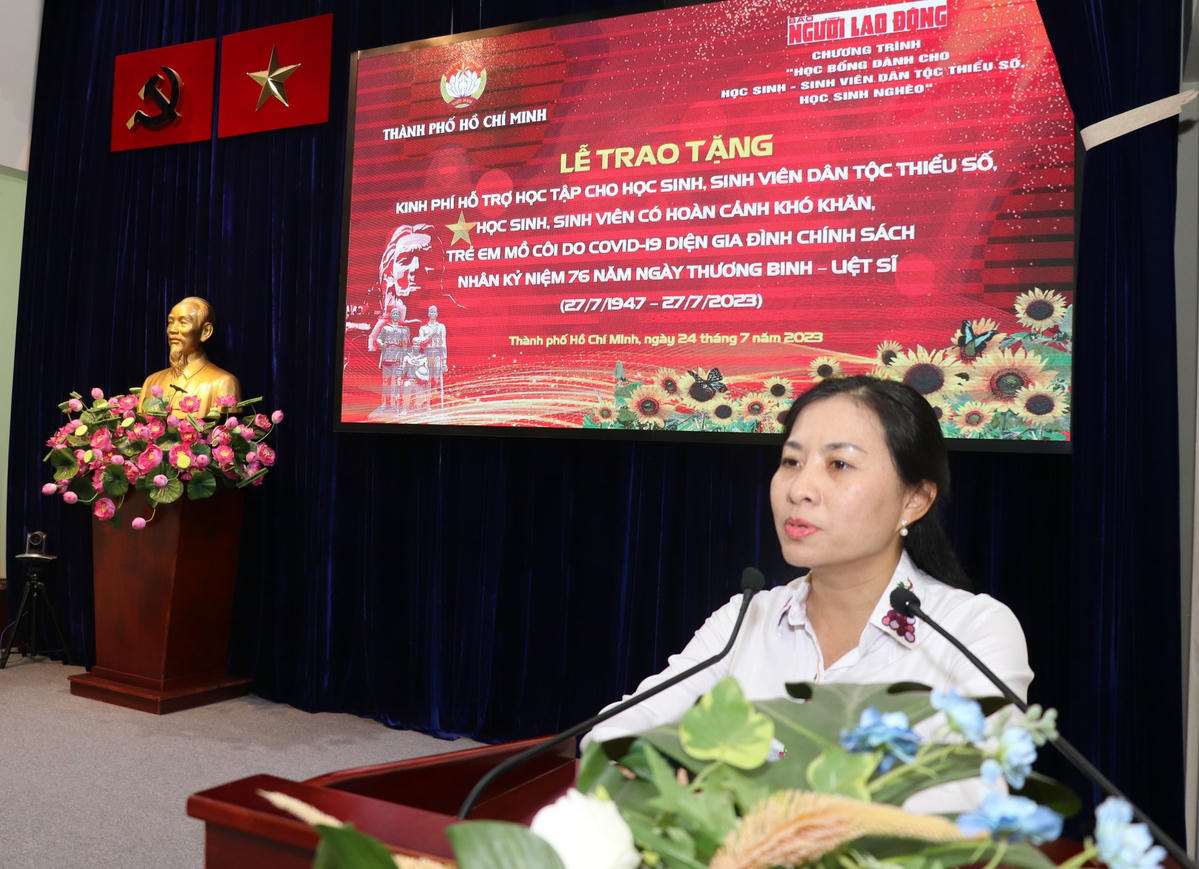 Chiều 24/7, Ủy ban MTTQ Việt Nam TP HCM phối hợp tổ chức buổi trao kinh phí hỗ trợ học tập cho học sinh, sinh viên dân tộc thiểu số; học sinh, sinh viên có hoàn cảnh khó khăn; trẻ mồ côi do dịch Covid-19 thuộc diện gia đình chính sách nhân kỷ niệm 76 năm Ngày Thương binh - Liệt sĩ (27/7/1947 – 27/7/2023).