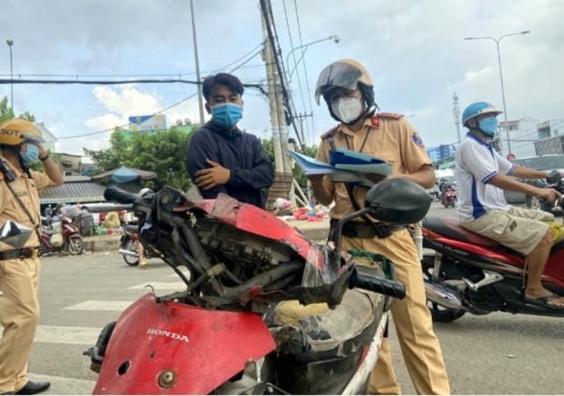 Cụ thể, lúc 8 giờ 25 phút cùng ngày, anh N.Q.V. (22 tuổi, ngụ huyện Hóc Môn) không đội mũ bảo hiểm, chạy xe máy "cà tàng" lưu thông hướng đi từ chợ đầu mối Hóc Môn, khi đến giao lộ Quốc lộ 22 - Nguyễn Thị Sóc thì bị Tổ công tác CSGT ra hiệu dừng xe kiểm tra hành chính.
