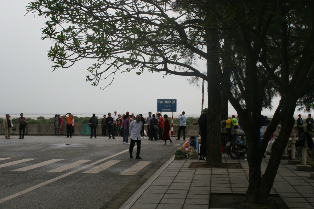 Người đi tới chào hỏi chúng tôi là một trung úy biên phòng, anh công tác tại Đài quan sát Tràng Vĩ thuộc Đồn Biên phòng Trà Cổ. Anh làm nhiệm vụ nhắc nhở mọi người tôn trọng nội quy biên giới khi từng đoàn người đang nô nức chụp ảnh ngay bên tấm bảng bê tông có dòng chữ “Khu vực vành đai biên giới”. Chàng trung úy biên phòng mỉm cười khi chúng tôi lên tiếng hỏi chuyện, anh xin phép chúng tôi không nhắc tên anh trong bài viết…