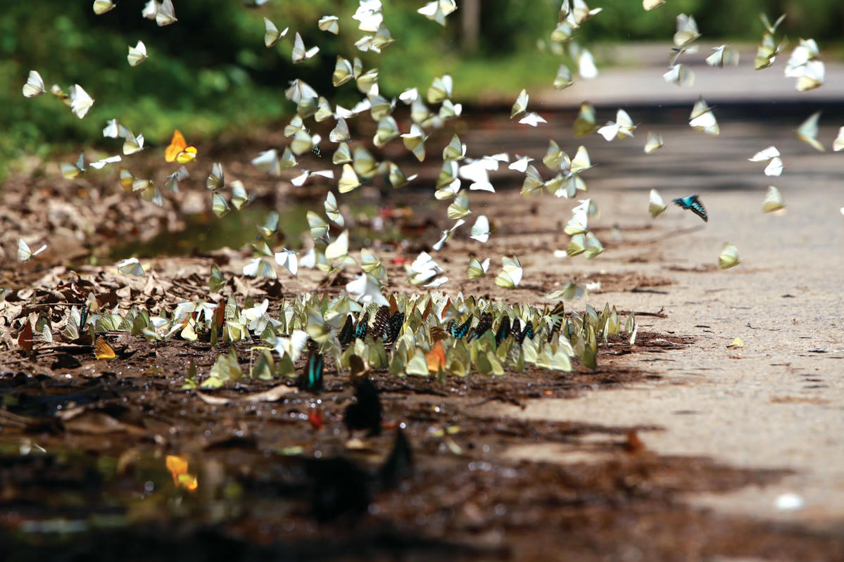 Đến rừng Cúc Phương, du khách được dịp khám phá những điều huyền bí mà khu rừng đang ẩn chứa. Có lẽ, điều mà nhiều du khách mong chờ nhất ở rừng Cúc Phương là thời điểm cuối tháng 4 và tháng 5, khi ấy là mùa bướm sinh sản, từng đàn bướm cứ thế bừng tỉnh giấc, ào ào bay ra khỏi tán cây rừng, vẽ nên một khung cảnh đầy huyền ảo và mơ mộng. Cũng trong khu Vườn, du khách dễ dàng bắt gặp loài vượn đen má hung quý hiếm không chỉ gây ấn tượng với ngoại hình đẹp mắt, khả năng chuyền cành xa mà loài động vật này còn sở hữu giọng hót say đắm lòng người…