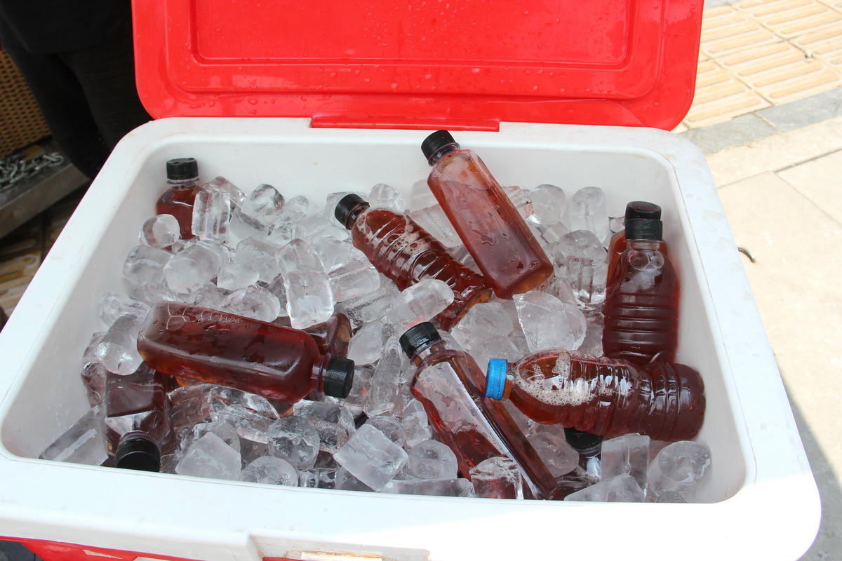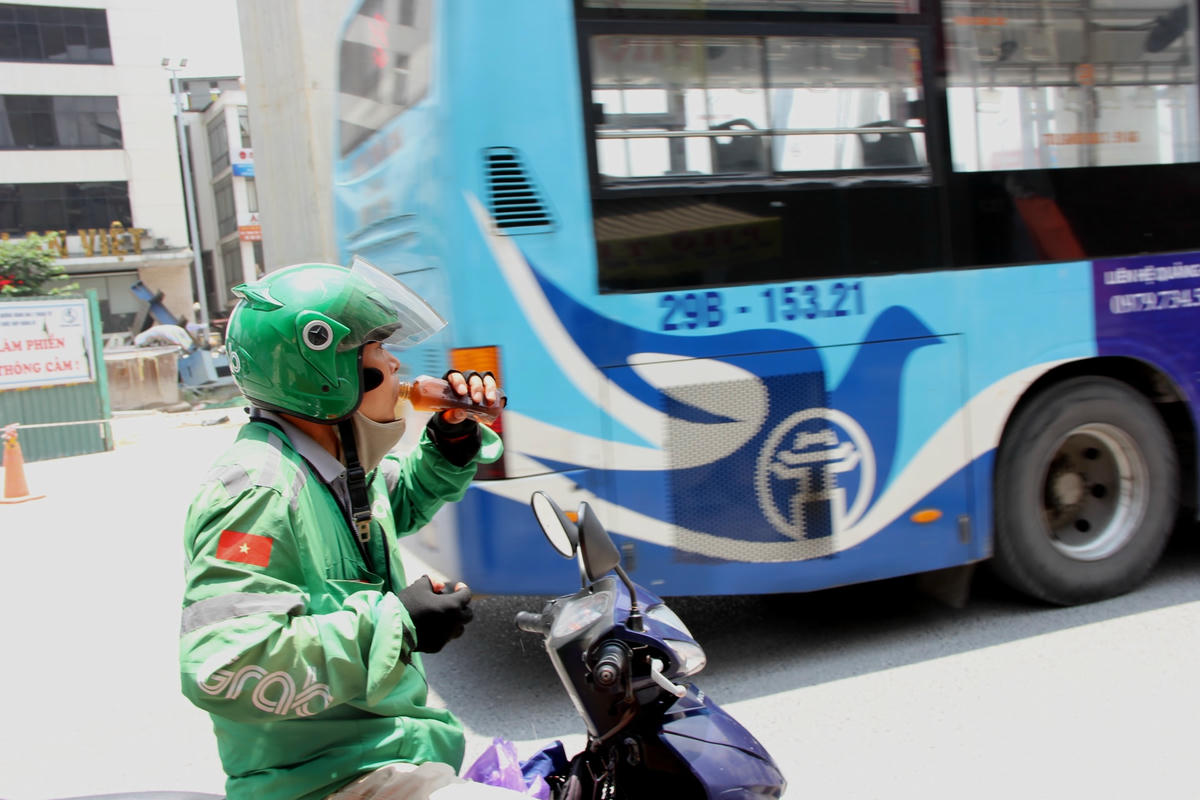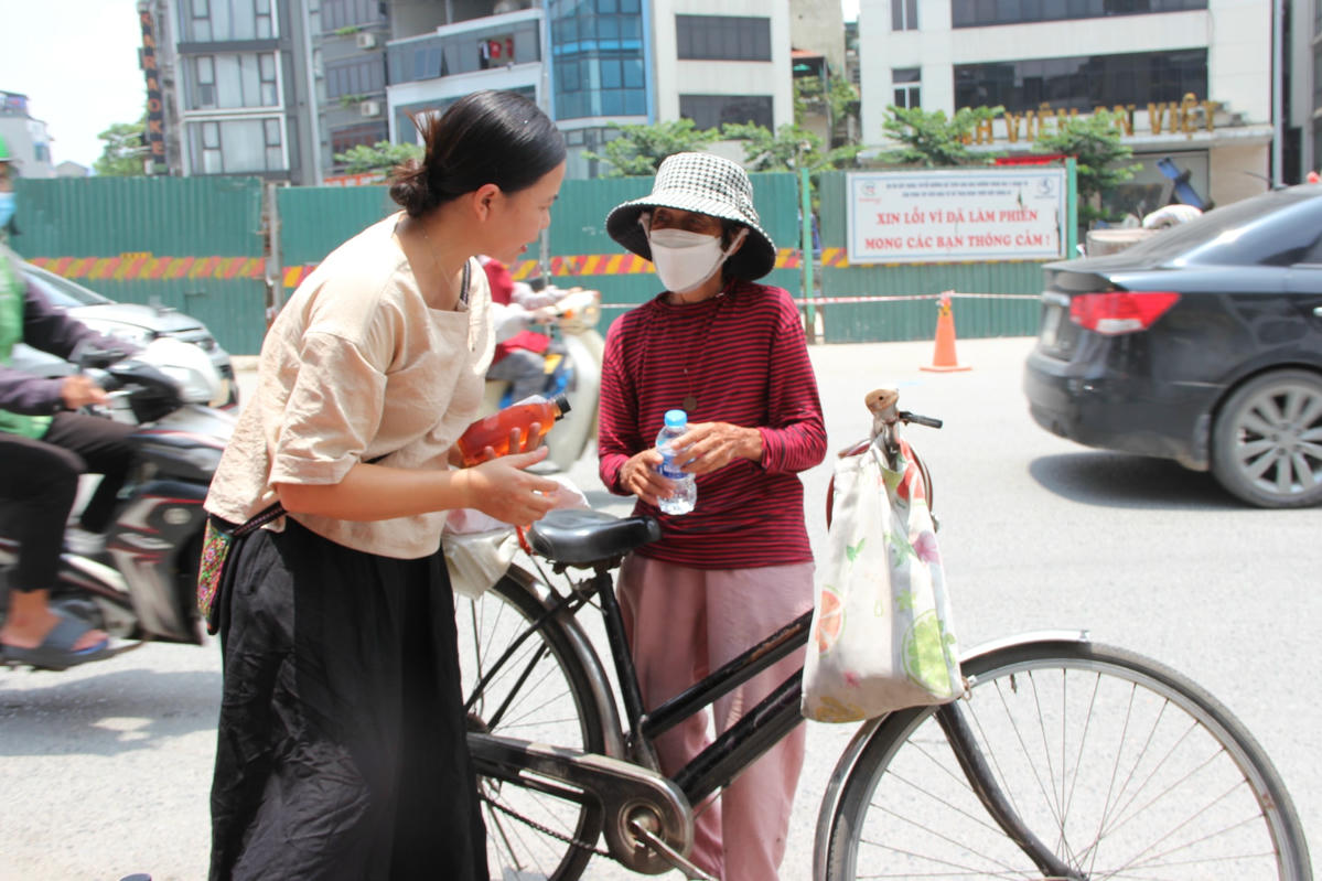 Những chai nước mát lạnh được phát miễn phí tại địa chỉ 141 Phố Vọng, quận Hai Bà Trưng (TP Hà Nội) đã phần nào giúp người đi đường, người lao động nghèo vơi bớt đi cái nóng giữa Thủ đô Hà Nội.