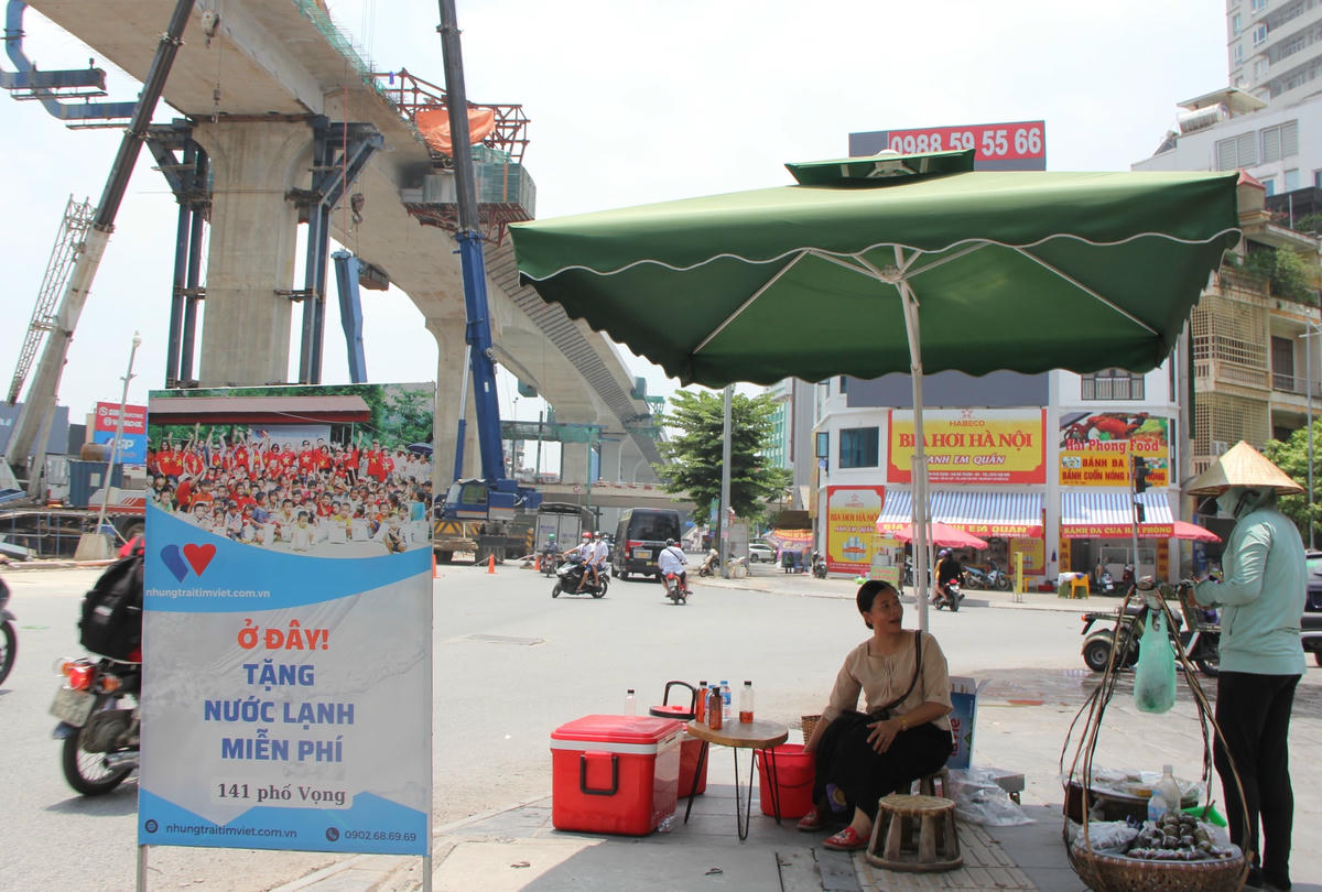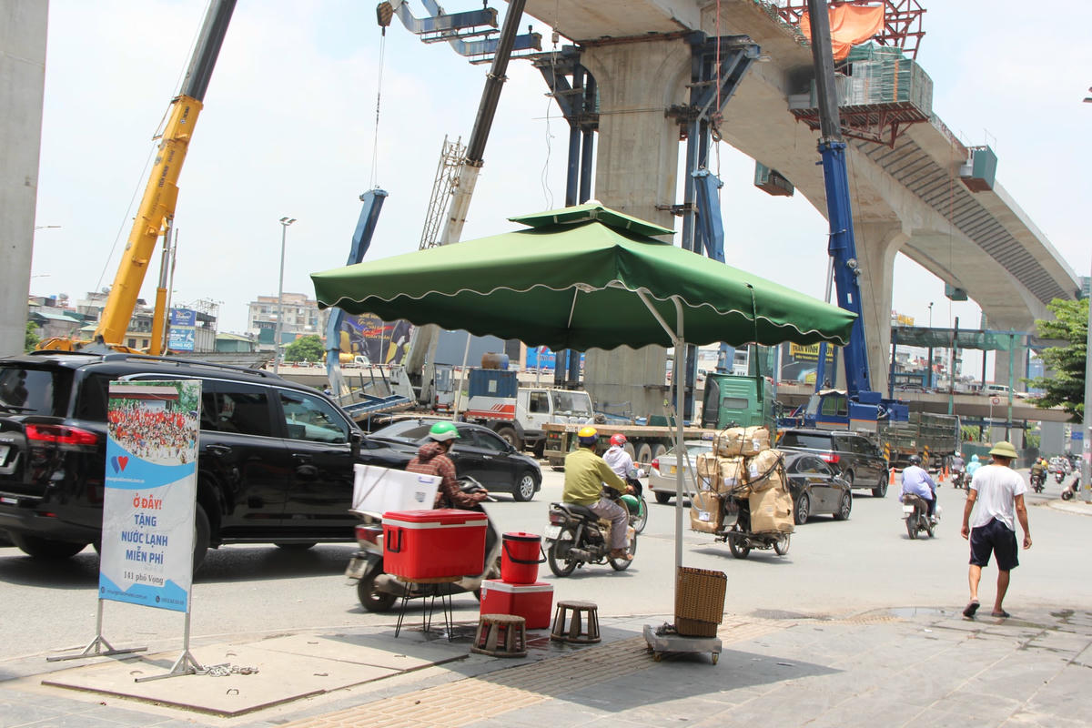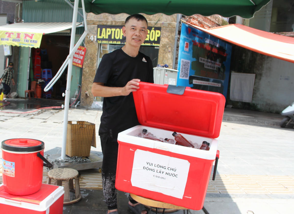 Trạm nước miễn phí phục vụ người lao động giữa thời tiết nắng nóng