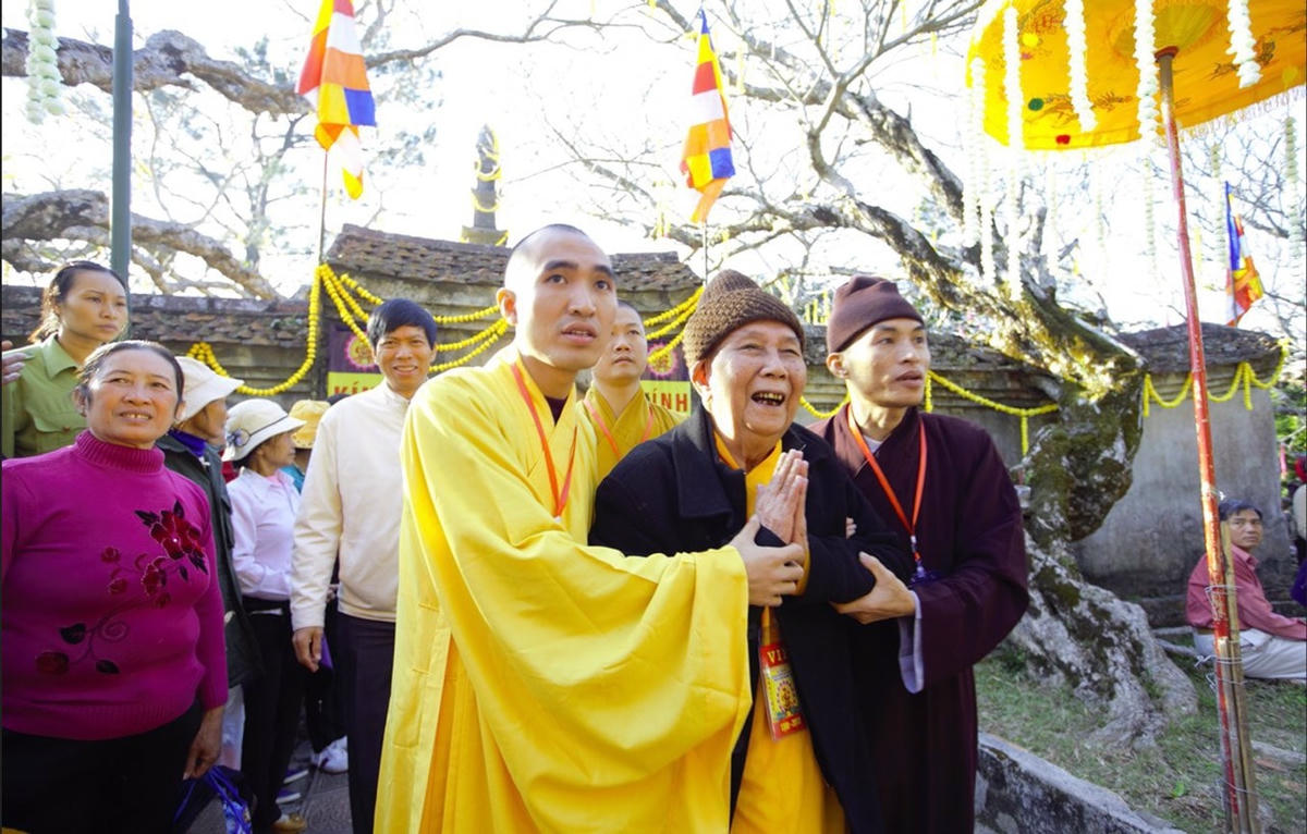 Các bức ảnh ghi lại những khoảnh khắc tĩnh - động, ẩn giấu trong chiếc lá mai rơi; dấu trầm tích của thời gian trên thân cây đại cổ thụ; mộ đá lặng yên phủ rêu xanh; khuôn mặt sung sướng, vỡ òa của vị đại lão hòa thượng khi đặt chân tới đất Phật, đường Tùng cuồn cuộn nâng bước chân Phật tử…