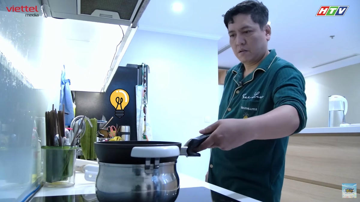 Không hỏi vợ thì hỏi…chị Google. Nhưng như có "thần giao cách cảm", mẹ Thúy gọi lại ngay sau khi thấy cuộc gọi nhỡ và nhanh chóng cứu nguy cho ba Thịnh màn rã đông đồ ăn sáng. Vốn dõng dạc tuyên bố sẽ "tự lập" mọi thứ nhưng rồi đứng trước bếp núc, ba Thịnh cũng đành "quay xe" sau 1 phút.
