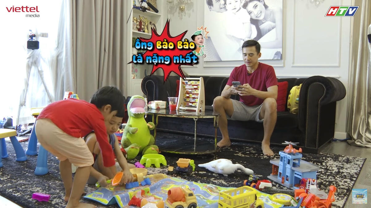 Quả đúng như vậy, thời gian ở cùng 2 cậu nhóc của Lương Thế Thành không thuận lợi chút nào. Anh phải trông chừng 2 cậu nhóc vì quá ham vui, thường xuyên làm đổ cát ra ngoài khu vực. Nhanh trí, Lương Thế Thành chụp lại "tang chứng vật chứng" cho vợ Thúy Diễm, còn dặn dò Bảo Bảo "Ba đã chụp lại bằng chứng rồi, khi nào mẹ về con chịu trách nhiệm với mẹ nha". Cậu bé 3 tuổi rưỡi nào đã kịp biết trách nhiệm là gì, nhưng nghe ba nói cũng lặp lại lập tức "Dạ, trách nhiệm". Và chỉ đợi có thế, Lương Thế Thành yên tâm để 2 cậu nhóc "lục banh cái nhà cũng được".