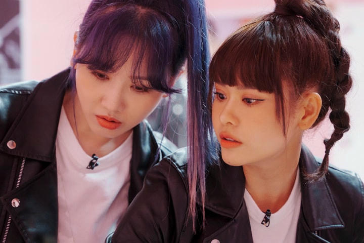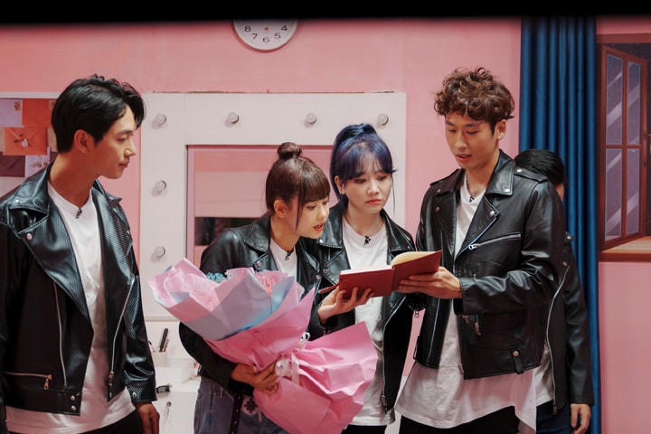 Căn phòng đầu tiên dàn cast trải nghiệm với màu chủ đạo là hồng pastel. Ngoài các vật dụng thường thấy như giường, bàn làm việc, thảm, kệ trưng bày cúp và gấu bông của fan gửi tặng... thì phòng còn có một chiếc bể bán cạn (terrarium) và một bàn trang điểm có lắp đèn bóng xung quanh.