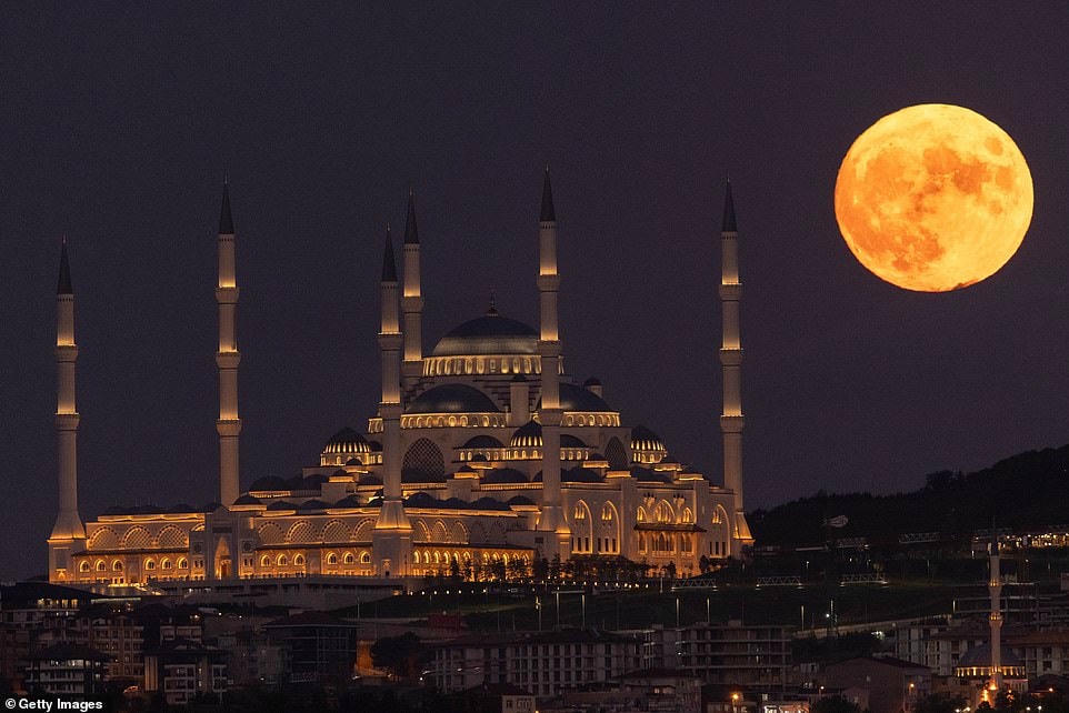 Sự hiện diện của siêu trăng "cá tầm" đã khiến tòa tháp The Shard ở London, Anh, thêm huyền ảo. Ảnh: AP.Mặt trăng như thể đang treo lơ lửng bên trên các tòa nhà chọc trời ở Frankfurt, Đức. Ảnh: AP.Mặt trăng như quả cầu đỏ rực trồi lên từ mặt biển vùng Dorset, Anh. Ảnh: Alamy .Trăng xuất hiện bên trên các tòa nhà ở thủ đô Amman của Jordan. Ảnh: AFP.Siêu trăng thắp sáng khoảng không gian tĩnh lặng xung quanh ngọn hải đăng Dovercourt Lower, Essex, Anh. Ảnh: Shutterstock.Đền thờ Camlica ở Instabul, Thổ Nhĩ Kỳ. Ảnh: Getty Images.Chiếc máy bay nhỏ bé trước siêu trăng. Ảnh: AP.Copenhagen, Đan Mạch. Ảnh: Anadolu.Siêu trăng mọc lên khi một máy bay phản lực tiếp cận sân bay Quốc tế John F Kennedy, New York. Ảnh: AP.Mặt trăng bên cạnh bức tượng của thần Hy Lạp Poseidon ở thành phố cổ đại Corinth gần ở Athens. Ảnh: AFP.Siêu trăng lấp ló đằng sau một chiếc cối xay gió ở Oostzaan, Hà Lan. Ảnh: AP.Bóng dáng siêu trăng màu đỏ xuất hiện mờ ảo sau khu phố Castelo của Lisbo. Ảnh: AP.Trăng "cá tầm" mọc đằng sau mái vòm của Học viện Mỹ thuật với thiên thần "Fama" ở Dresden, Đức. Ảnh: AP.Siêu trăng mọc sau cây thánh giá trên mái vòm của nhà thờ Maronites St. Maron ở Anthoupolis, ngoại ô Nicosia, Síp. Ảnh: AP.Phía sau nhà thờ The Shard và St Paul, ở London. Ảnh: AP.Vương cung Thánh đường St. Peter tại Rome, Italy.