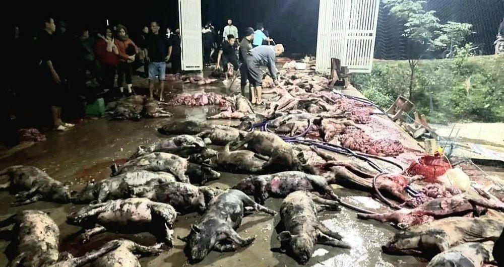Trong đêm tối, một trang trại lợn của người dân bị bốc cháy, khiến hơn 1.000 con lợn bị chết la liệt, ước tính thiệt hại hơn 10 tỷ đồng.