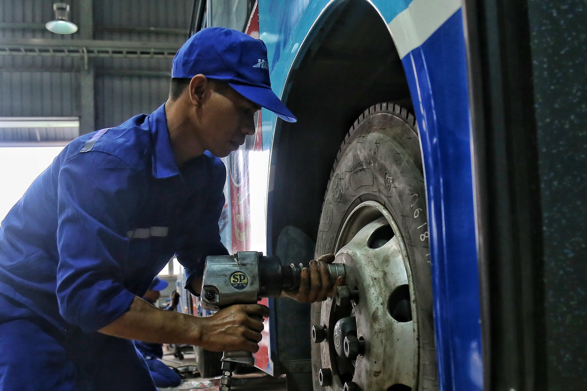 “Cho nên việc bảo dưỡng định kỳ là các công việc bắt buộc phải thực hiện sau một chu kỳ vận hành phương tiện theo quy định của Tổng Công ty. Để nâng cao chất lượng phương tiện, đảm bảo xe đã vận hành là phải trong điều kiện tốt nhất, cùng với việc đầu tư thay mới phương tiện thì việc siết chặt quy trình sửa chữa, bảo dưỡng thường xuyên, định kỳ luôn được Tổng Công ty chú trọng” - anh Tuyên chia sẻ.