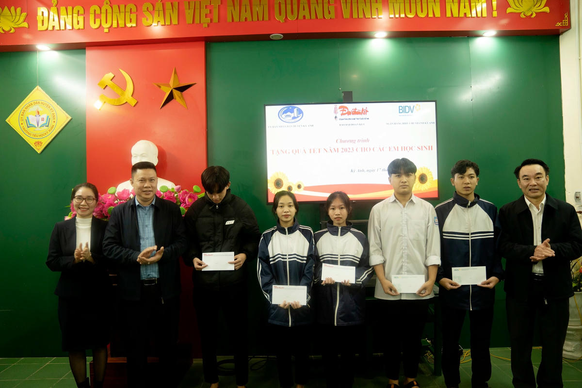 Sáng 17/1, Văn phòng đại diện Báo Đại Đoàn Kết khu vực Trung Trung Bộ phối hợp với Ngân hàng BIDV Phòng Giao dịch Kỳ Đồng, Chi nhánh Nam Hà Tĩnh trao 100 suất quà (mỗi suất 500 nghìn đồng, tổng số tiền 50 triệu đồng) cho học sinh nghèo vượt khó học giỏi trên địa bàn huyện Kỳ Anh.