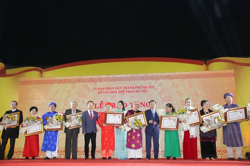 Phát biểu tại buổi lễ, Phó Chủ tịch UBND TP Hà Nội Chử Xuân Dũng cho biết, để ghi nhận những đóng đóng góp của các Nghệ nhân, tại kỳ họp thứ 10 Hội đồng Nhân dân thành phố khóa 16 vừa qua, HĐND Thành phố Hà Nội đã thông qua Nghị quyết quy định về việc đãi ngộ, hỗ trợ đối với các Nghệ sĩ, Nghệ nhân và Câu lạc bộ tiêu biểu trong lĩnh vực di sản văn hóa phi vật thể trên địa bàn Thành phố.