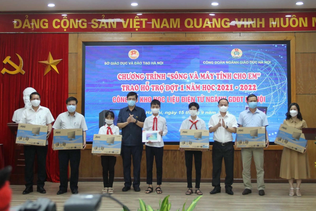 Chiều 15/9, Sở GDDT Hà Nội phối hợp với Công đoàn ngành Giáo dục Hà Nội tổ chức chương trình “Sóng và máy tính cho em”, trao hỗ trợ đợt 1 năm học 2021 - 2022 cho học sinh có hoàn cảnh khó khăn, công bố kho học liệu điện tử ngành GDĐT Hà Nội.