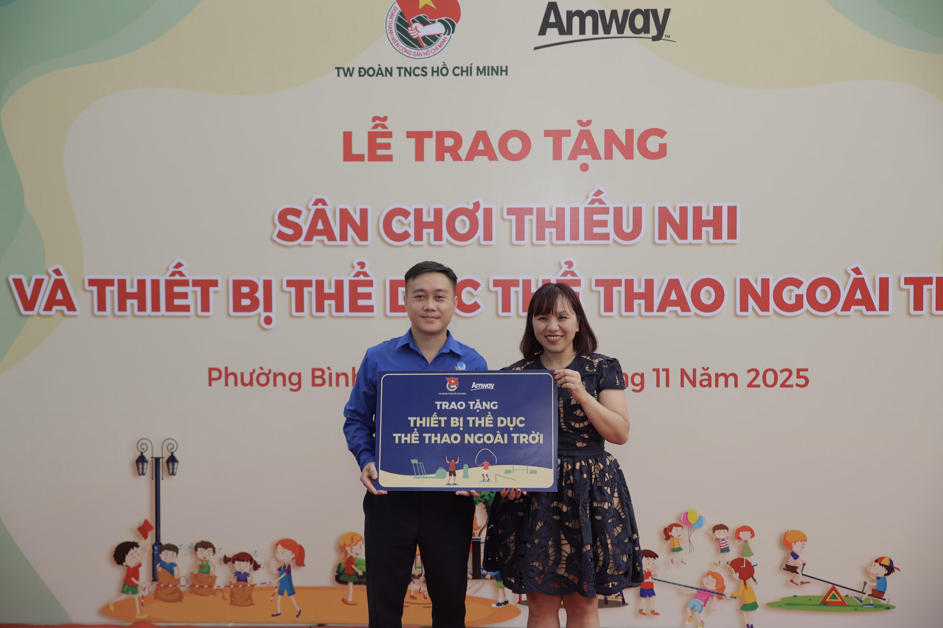 Ngày 18/11, tại Phường Bình Dương, TP Hồ Chí Minh, Ban Công tác Đoàn và Công ty TNHH Amway Việt Nam (Amway Việt Nam) tổ chức lễ trao tặng sân chơi thiếu nhi và dụng cụ tập thể dục thể thao ngoài trời.