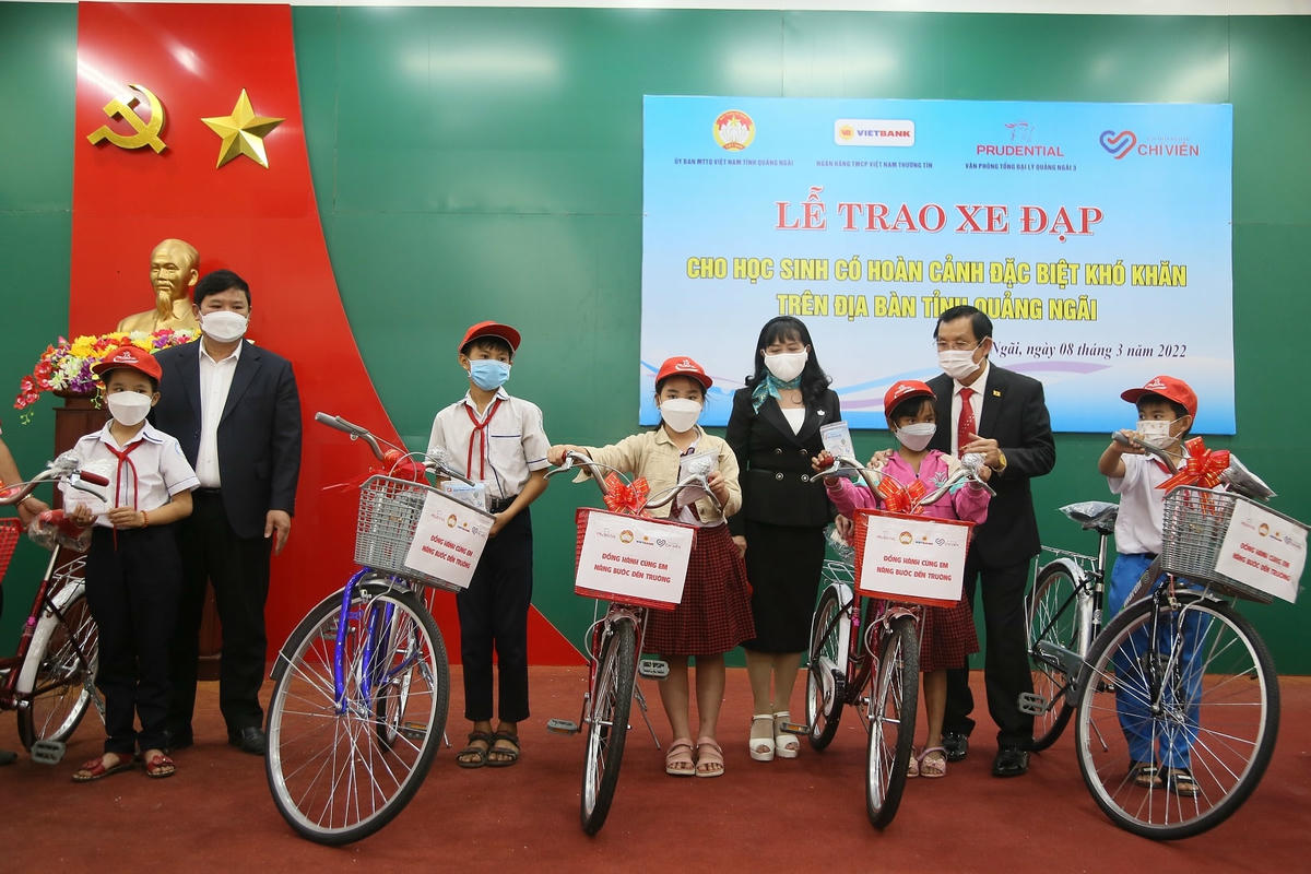 Theo đó, Ban tổ chức đã trao tặng 26 chiếc xe đạp cho các em học sinh ở huyện Tư Nghĩa và TP Quảng Ngãi, tỉnh Quảng Ngãi có hoàn cảnh khó khăn.