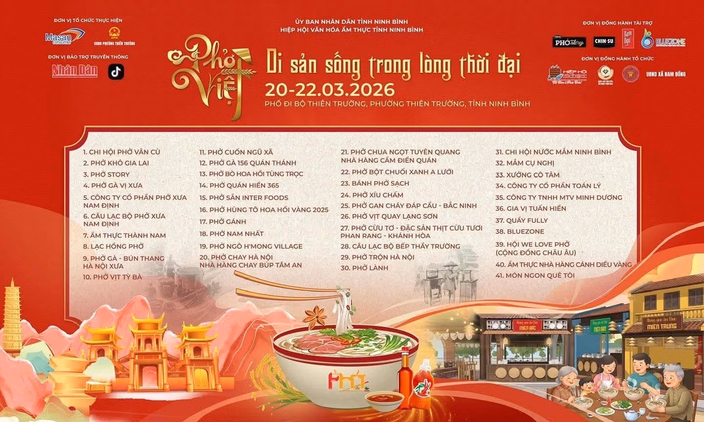 Nằm trong các hoạt động festival phở năm 2026 do Hiệp hội Văn hóa ẩm thực tỉnh Ninh Bình phối hợp cùng chính quyền một số địa phương trong tỉnh tổ chức, sáng ngày 19/3, tại thôn Vân Cù, xã Nam Đồng, tỉnh Ninh Bình, chính quyền xã và cộng đồng làng tổ chức chương trình tham quan trải nghiệm làng nghề phở Vân Cù.