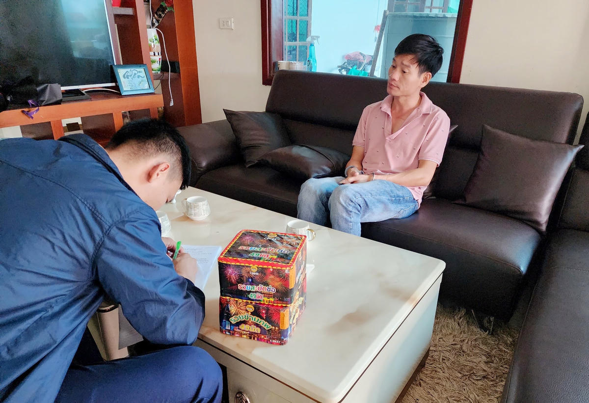 Tiến hành khám xét nơi ở của Thành, lực lượng chức năng thu giữ thêm 2 hộp pháo nổ, có khối lượng 3,4 kg.