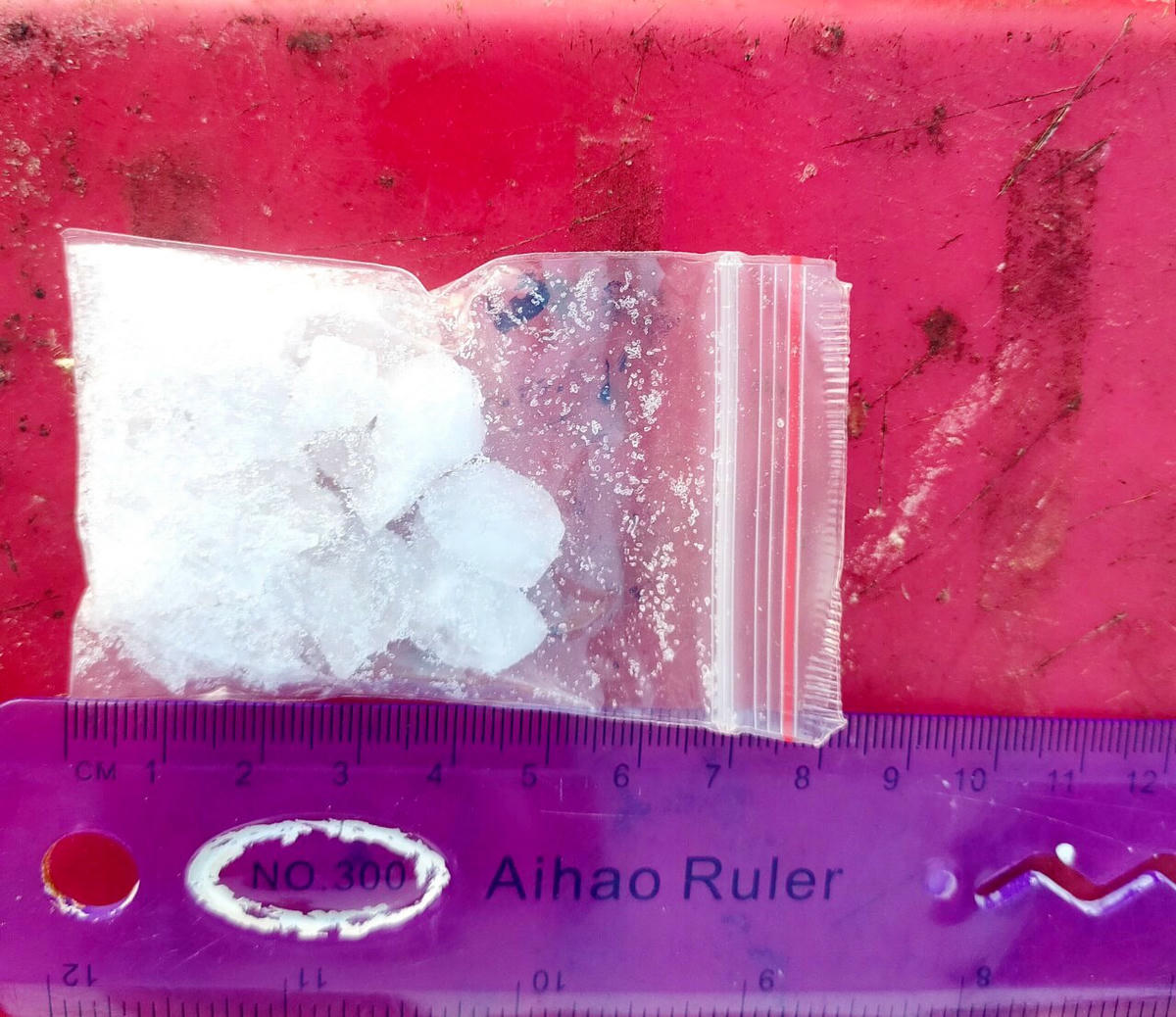Quá trình kiểm tra, lực lượng chức năng đã phát hiện, thu giữ một gói ma túy tổng hợp dạng đá (sau khi giám định, có khối lượng 8,973 gam methamphetamine) đựng trong hộp giấy bìa cát tông.