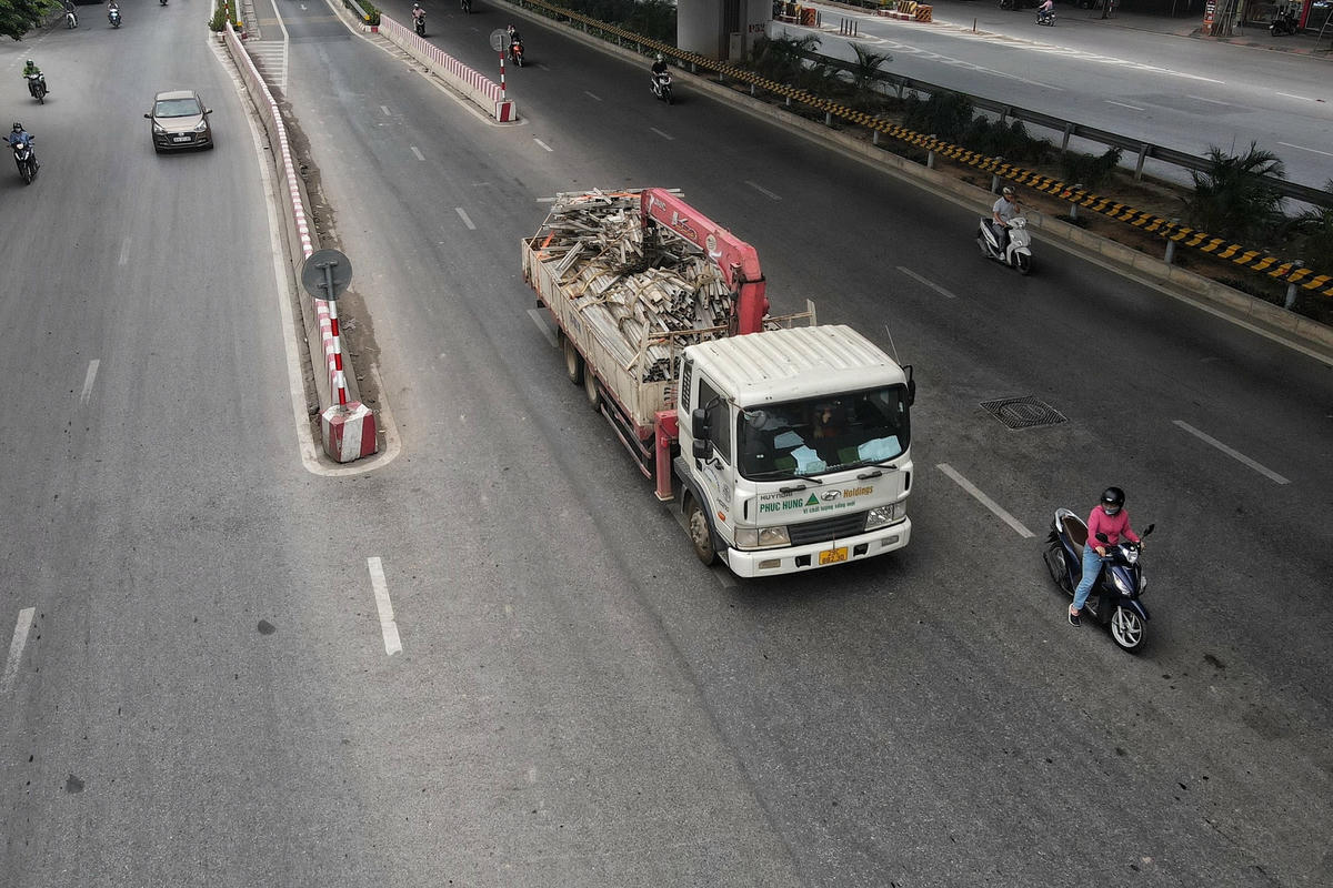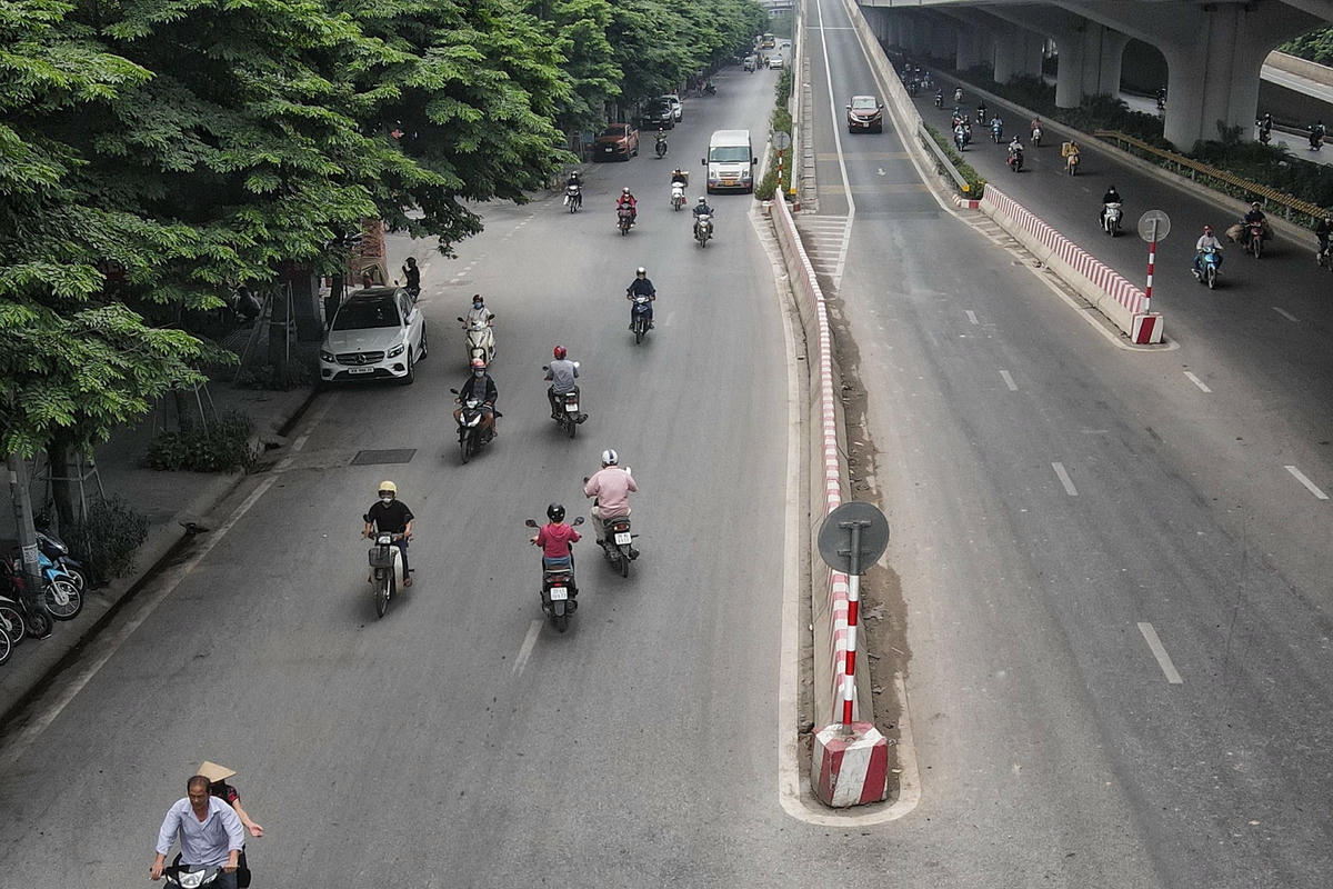 Sau khi đi vào hoạt động, tuyến đường Vành đai 3 trên cao là một trong những tuyến giao thông đẹp nhất của Thủ đô Hà Nội. Song, tại tuyến đường Phạm Văn Đồng (phía dưới) đang xảy ra bất cập trong việc bố trí các điểm nút giao thông khiến người dân thường xuyên đi ngược chiều.