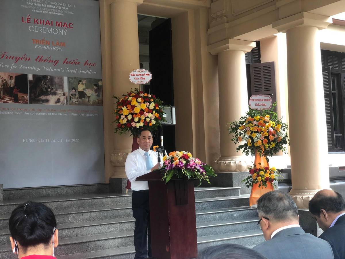 Phát biểu tại Lễ khai mạc triển lãm, ông Nguyễn Anh Minh, Giám đốc Bảo tàng Mỹ thuật Việt Nam cho biết, “Truyền thống hiếu học” là triển lãm được tổ chức nhằm tôn vinh tinh thần dân tộc. Đồng thời khơi dậy niềm tự hào, động viên thế hệ trẻ tiếp nối cha ông không ngừng học tập, rèn luyện, phấn đấu để trở thành chủ nhân tương lai của đất nước.