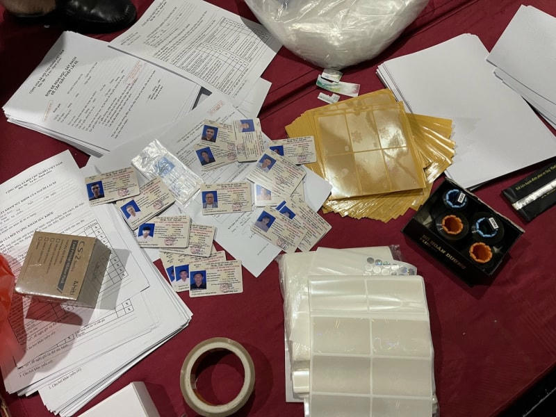 Trước đó, Cục An ninh chính trị nội bộ đã phối hợp với Công an TP Hà Nội triệt phá 1 đường dây có hoạt động vi phạm pháp luật tương tự, khởi tố 12 bị can “tội làm giả, sử dụng con dấu, tài liệu của cơ quan, tổ chức”, quy định tại Điều 341, Bộ luật Hình sự; thu giữ nhiều con dấu giả (của một số bộ: Bộ Giáo dục và Đào tạo, Bộ Giao thông vận tải, Bộ Y tế, Sở Giao thông vận tải, bệnh viện đa khoa, trường học tại nhiều tỉnh thành) cùng phương tiện, máy móc và hàng nghìn giấy tờ giả đã làm hoàn thiện.
