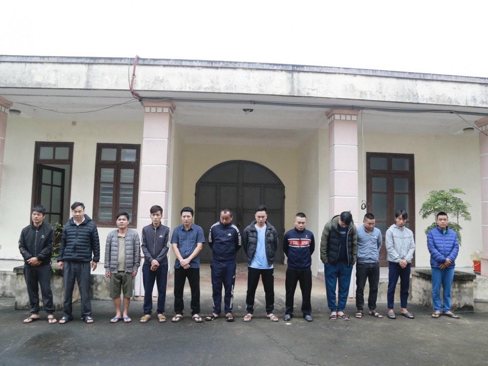Các đối tượng bị khởi tố gồm: Lê Văn Nam (55 tuổi), Lê Cao Cường (33 tuổi), Nguyễn Văn Thọ (47 tuổi), Hoàng Văn Tài (41 tuổi), Trương Hoài Nam (39 tuổi, cùng trú tại thị trấn Thạch Hà, huyện Thạch Hà); Nguyễn Đình Vũ (41 tuổi), Nguyễn Viết Trúc (37 tuổi, cùng trú tại xã Thạch Long, huyện Thạch Hà); Nguyễn Văn Chỉnh (41 tuổi), Phạm Văn Hải (35 tuổi), Phạm Tiến Dũng (30 tuổi), Lê Đình Đạt (28 tuổi, cùng trú tại xã Thạch Sơn, huyện Thạch Hà); Lê Quý Phú (41 tuổi, trú tại xã Thạch Ngọc, huyện Thạch Hà).