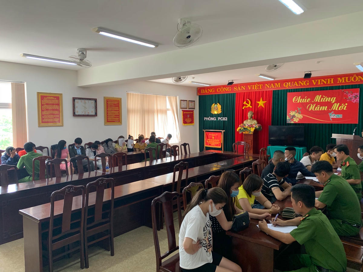 Theo đó, các đối tượng bị bắt giữ gồm 42 người là khách thuê phòng, 4 nhân viên và 1 chủ nhà nghỉ.