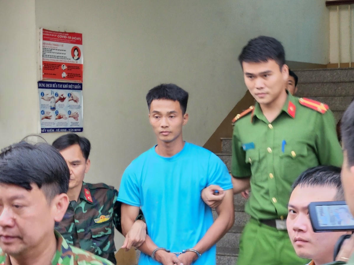 Lúc đó, Triệu Quân Sự mặc áo phông màu xanh, quần dài, đeo khẩu trang và đội mũ.