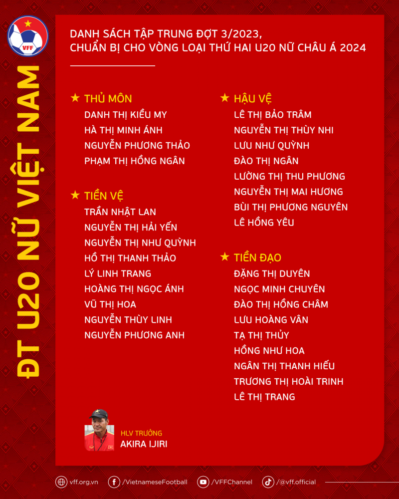 ĐT U20 nữ Việt Nam đã hội quân chuẩn bị Vòng loại thứ hai U20 nữ châu Á 2024 với 30 cầu thủ.