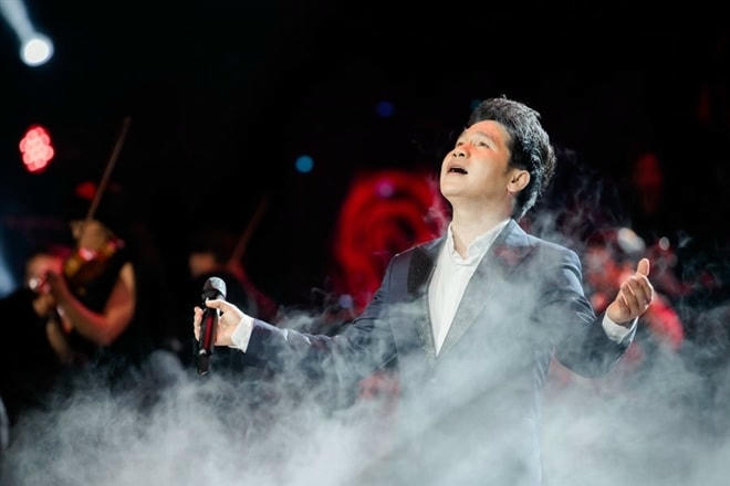 Lần đầu tiên, Trọng Tấn khoe con trai trên sân khấu âm nhạc của mình; chàng trai năm nay 16 tuổi, đang học thanh nhạc tại Học viện âm nhạc quốc gia Việt Nam.