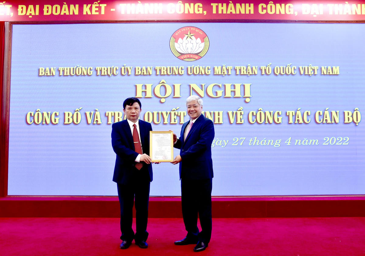 Ngày 27/4, tại Hà Nội, ông Đỗ Văn Chiến, Bí thư Trung ương Đảng, Bí thư Đảng đoàn, Chủ tịch UBTƯ MTTQ Việt Nam đã chủ trì Hội nghị công bố và trao quyết định về công tác cán bộ.
