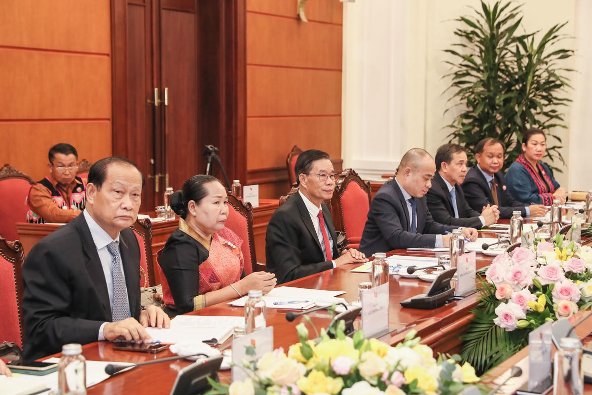 Trưởng Ban Dân vận Trung ương hội đàm với Chủ tịch Trung ương Mặt trận Lào xây dựng đất nước